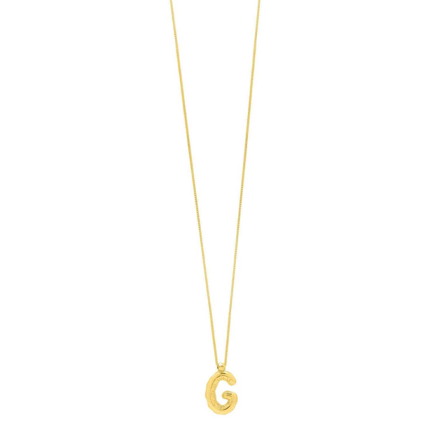 14K Yellow Gold Bubble Initial G Pendant Necklace
