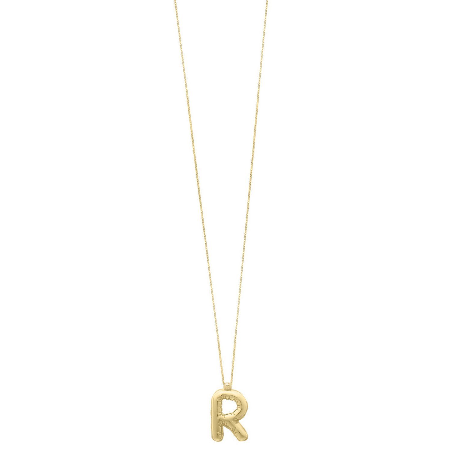 14K Yellow Gold Bubble Initial R Pendant Necklace