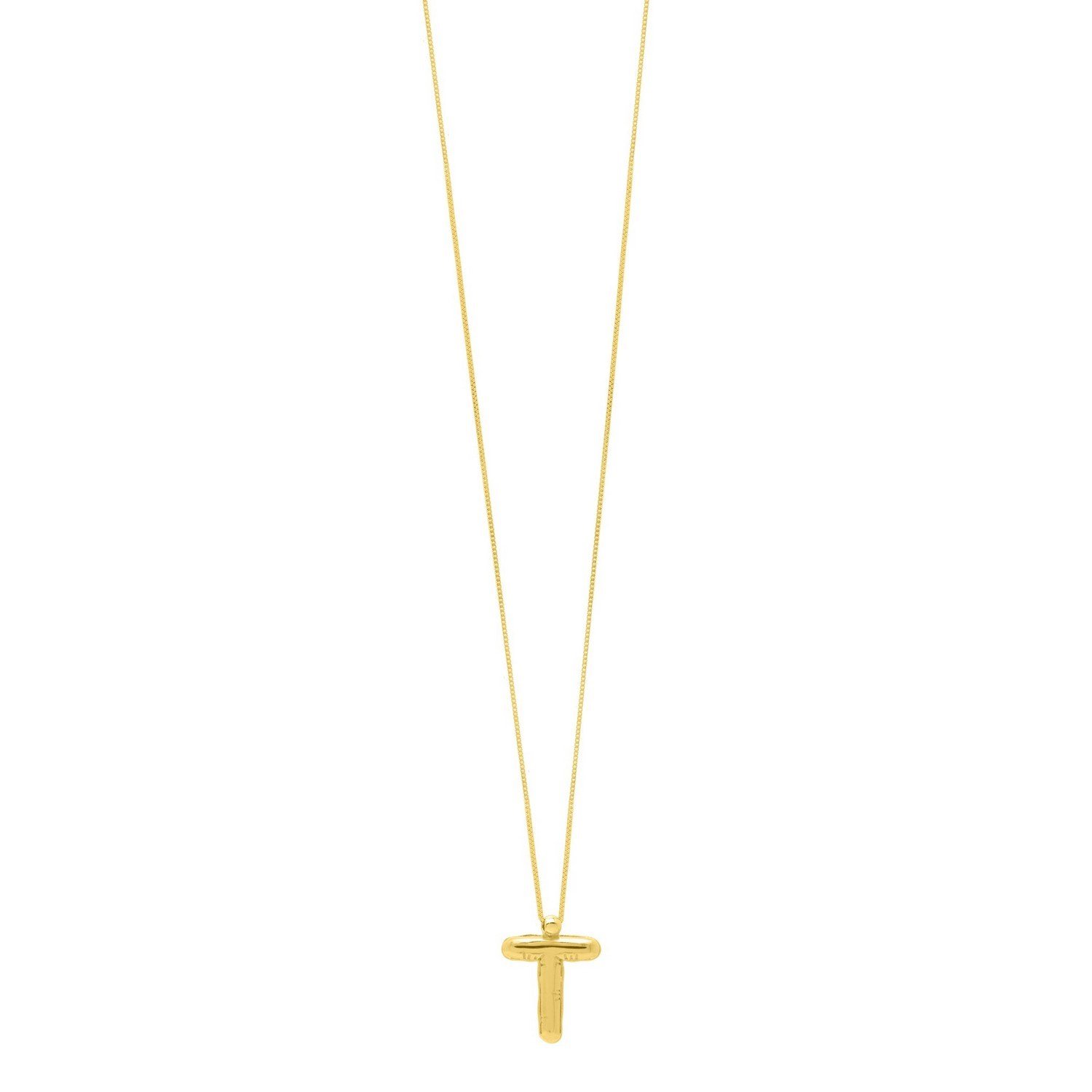 14K Yellow Gold Bubble Initial T Pendant Necklace