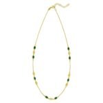 Elevate your style with this stunning 14K gold malachite and onyx stone link necklace. Order now and add a touch of sophisticated, timeless elegance to your collection!