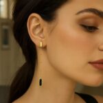 14K Yellow Gold Hexagon Black Onyx Drop Dangle Earrings reflect modern elegance with their geometric design and delicate jewelry details. The shiny black onyx stones dangle from elegant Saturn chains, creating a dynamic sparkle. The hexagonal stone cut adds a contemporary twist to the classic earring concept while symbolizing balance and elegance. It offers simple sophistication for everyday wear and a striking accessory for special occasions.