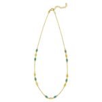 Add a bold touch to your style: Solid 14k gold hexagonal turquoise stone necklace is a stylish piece from Royal Chain’s popular Inlay Gemstone Fashion collection. Measuring 18 inches (≈45 cm) in length, the necklace features a striking design with shiny gold rings alternating with black onyx and shiny turquoise stones. The gemstone-studded links flow gracefully along the intricately crafted chain, while the durable lobster clasp ensures a secure and comfortable fit. It is an ideal choice for completing your everyday elegance or making a statement at special evening events.