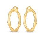 14k Yellow Gold Large Bamboo Hoop Earrings