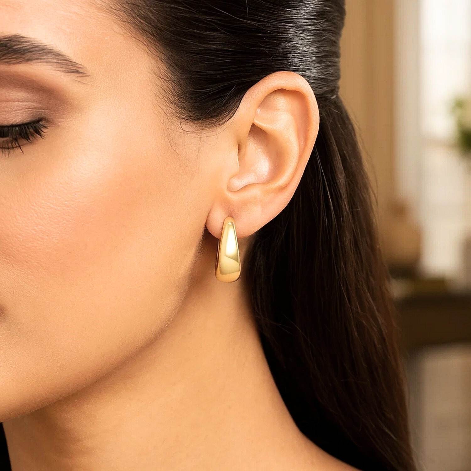 With their balanced shape and polished surface, these gold hoop earrings are an ideal choice for women who want an elegant look. Their comfortable design allows for all-day wear. The hinged clasp closes securely, making the earrings both practical and durable. These earrings are a must-have piece for women who love simple and subtle details. Whether worn at the office or out for the evening, they add the warm glow of gold to your style.