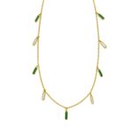 Order now and add the elegance of the 14K gold malachite and mother of pearl station necklace to your style. Wear it alone or combine it with other necklaces for a chic and modern look.