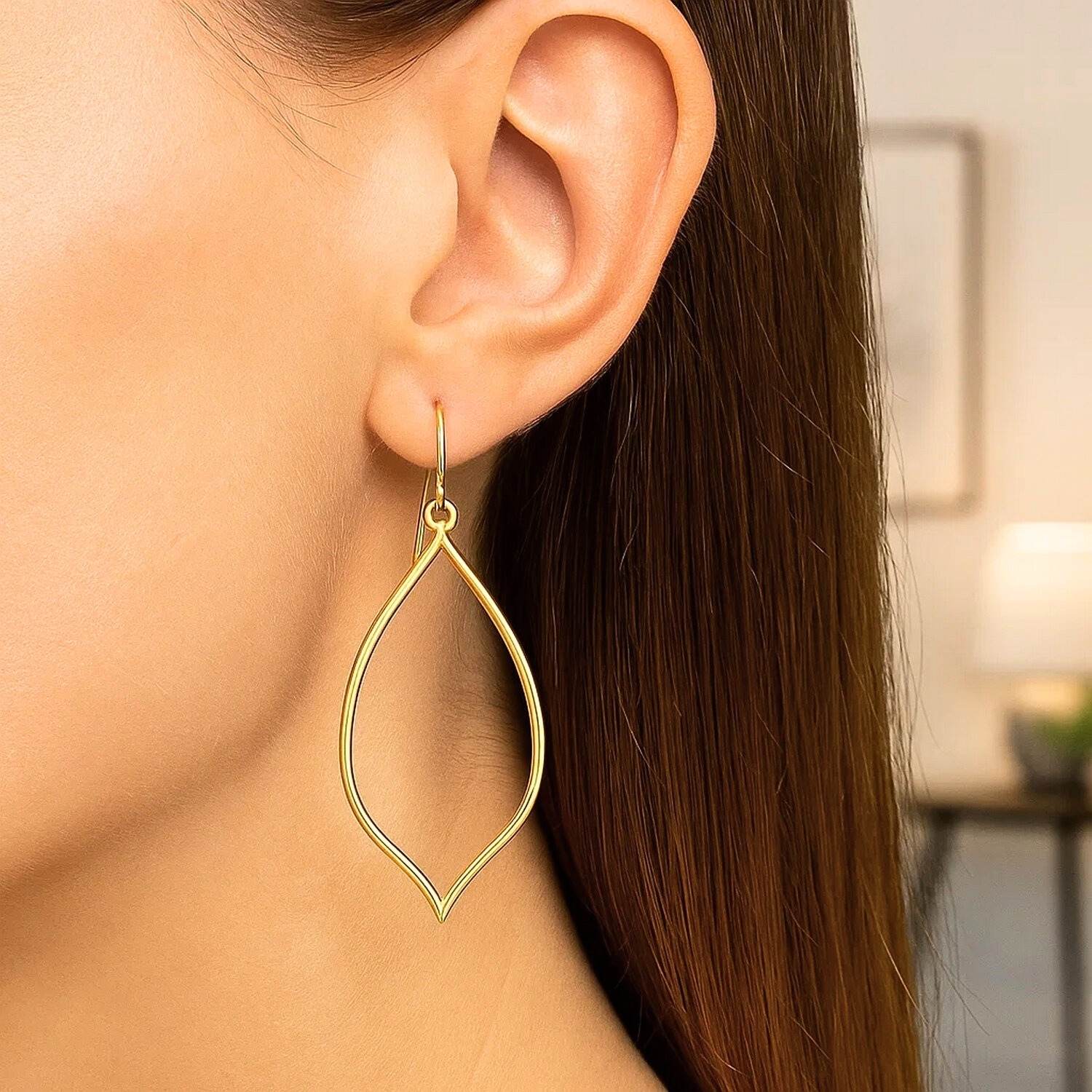 The long marquise shape elegantly accentuates facial features. Their lightweight construction ensures all-day comfort, while the French Wire closure provides a secure and comfortable wearing experience.