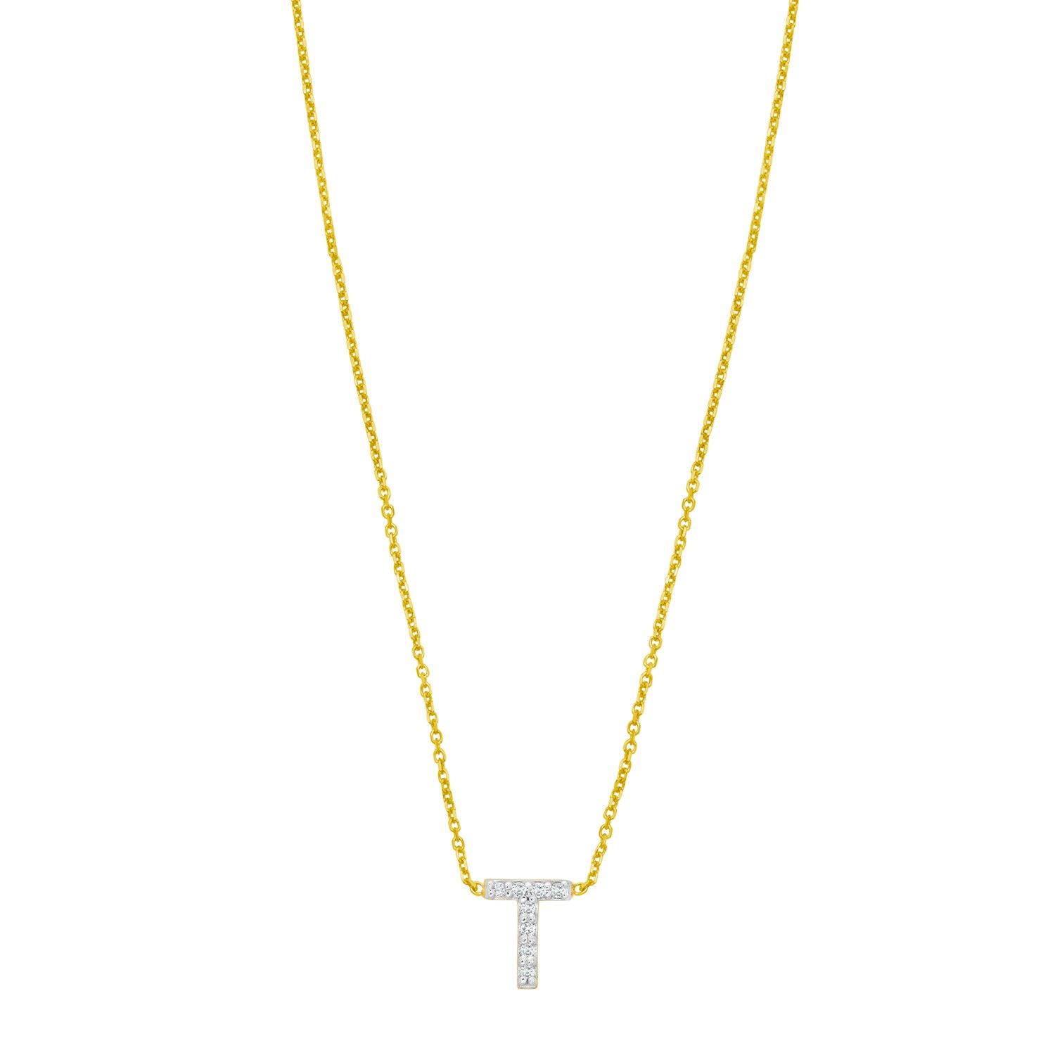 14K Yellow Gold Mini Diamond T Initial Pendant Necklace