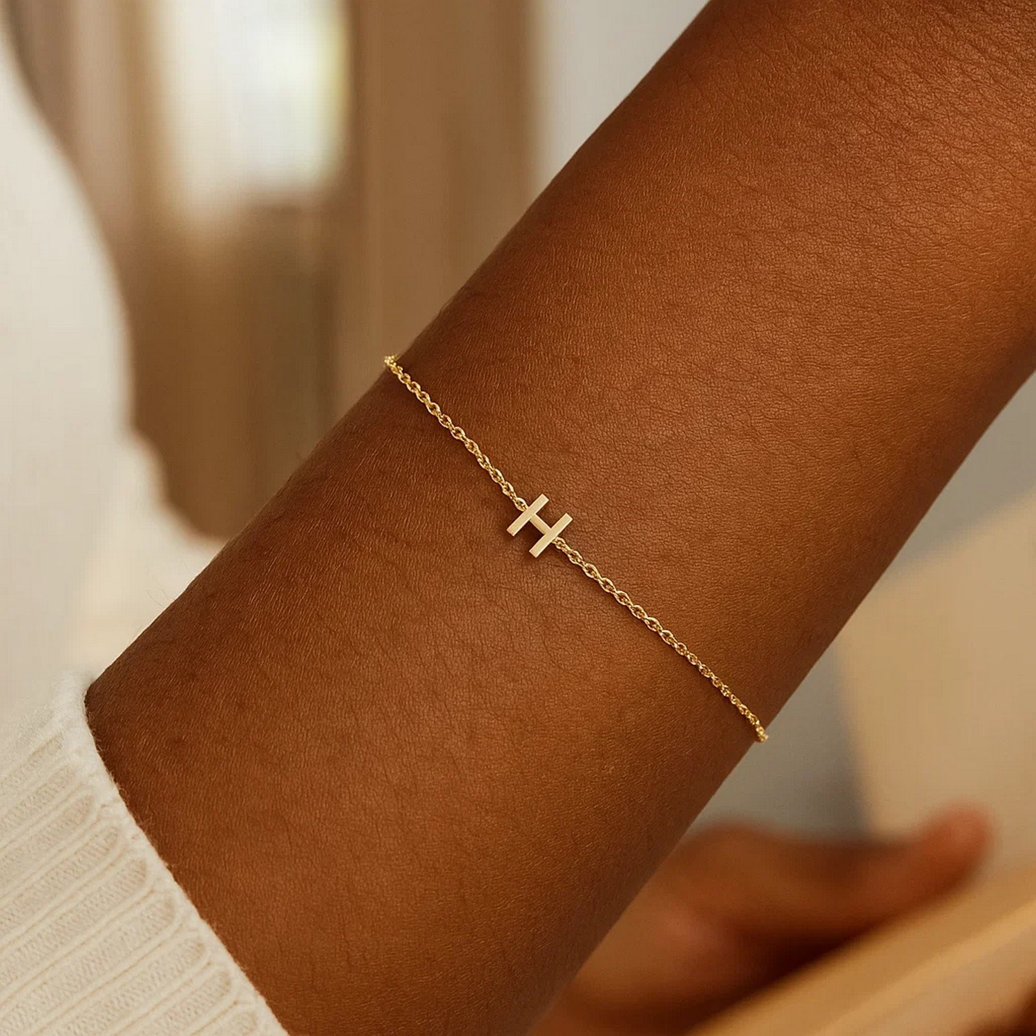 Real 14K Yellow Gold Mini Initial H Bracelet is a unique piece of jewelry that stands out for its lightness, suitable for daily wear. Order online now and take advantage of free shipping and great discount opportunities.
