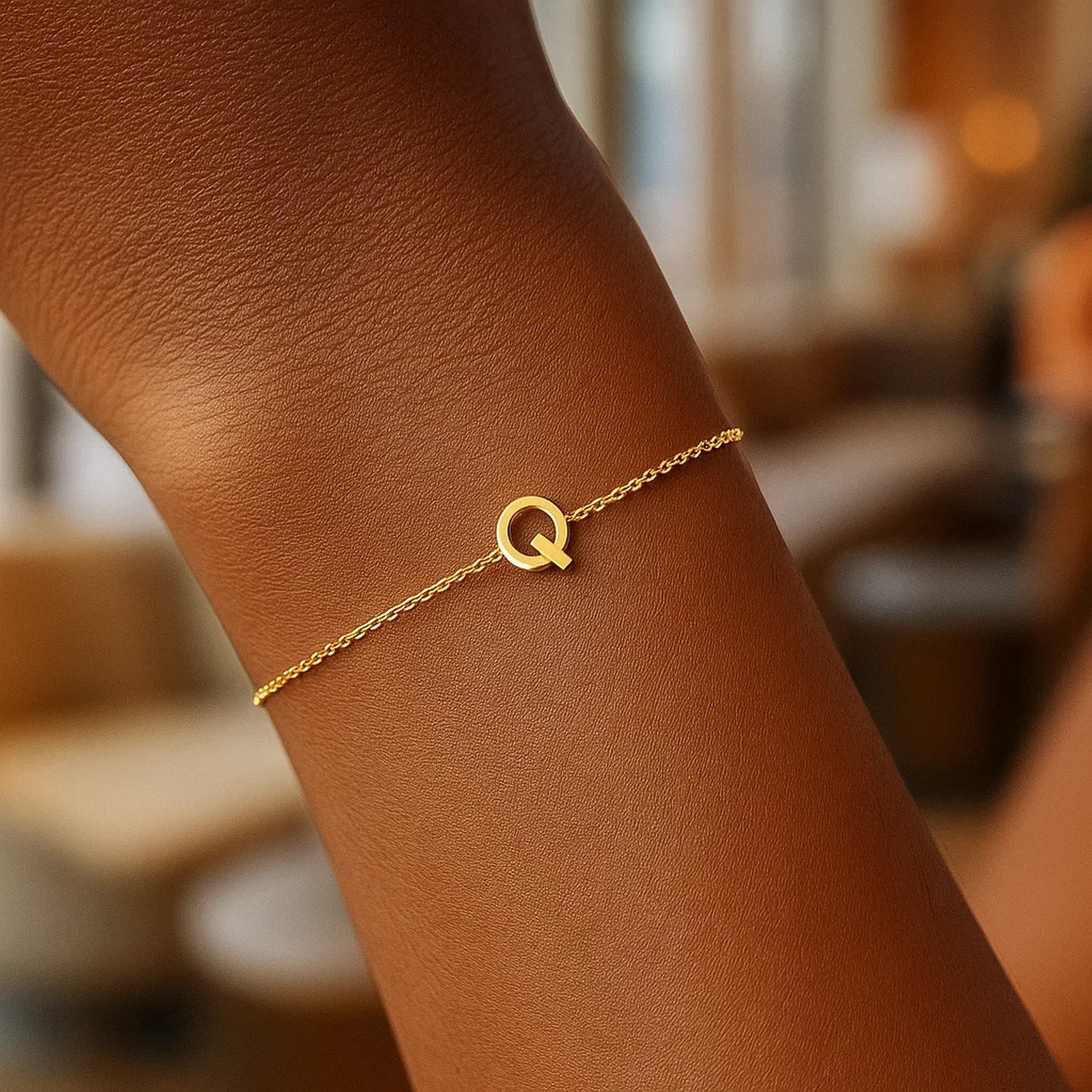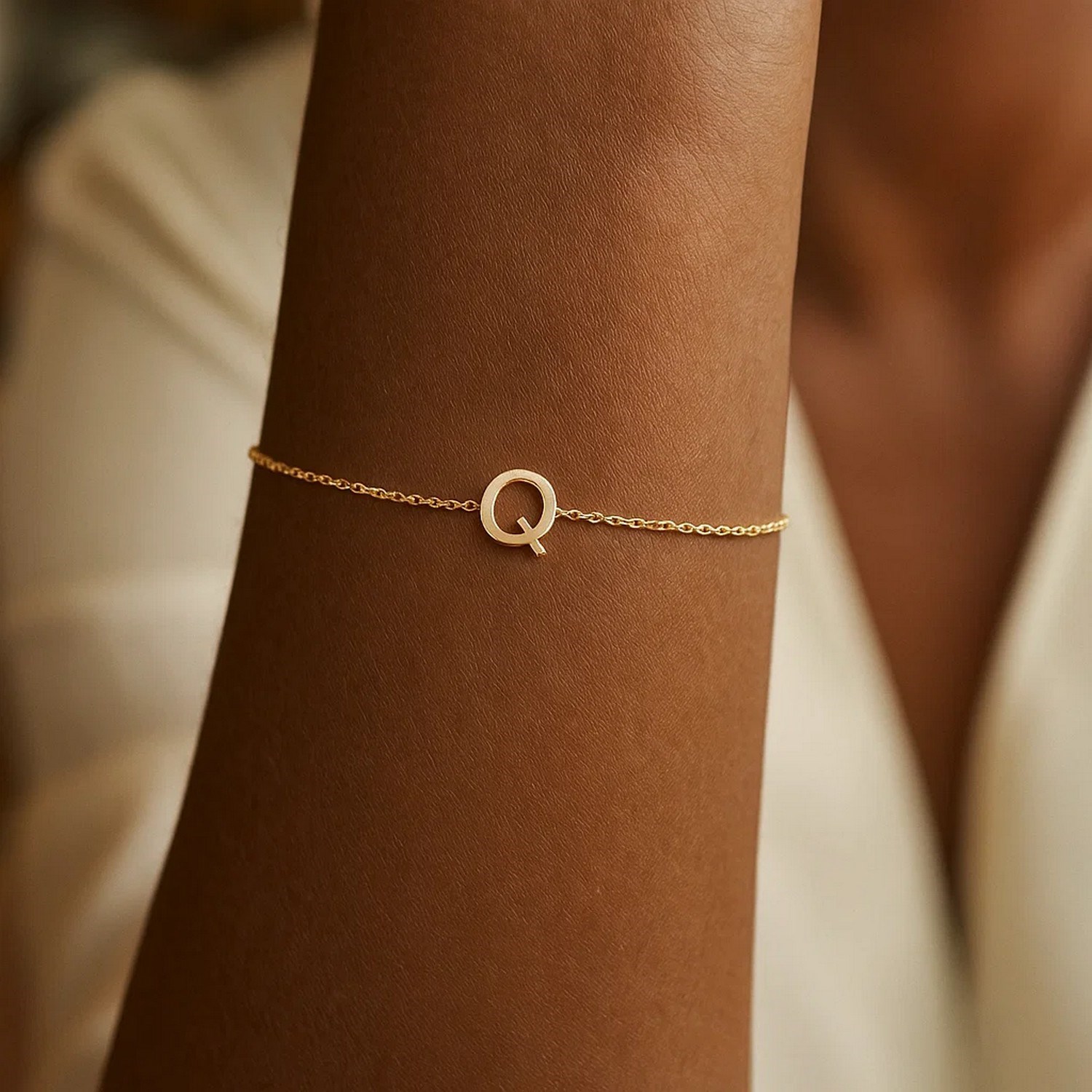 Real 14K Yellow Gold Small Letter Q Bracelet is a unique piece of jewelry that stands out for its lightness, making it suitable for everyday wear. Order online now and take advantage of free shipping and great discount opportunities.