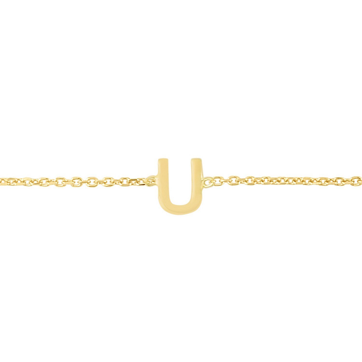 Real 14K Yellow Gold Mini Initial U Bracelet