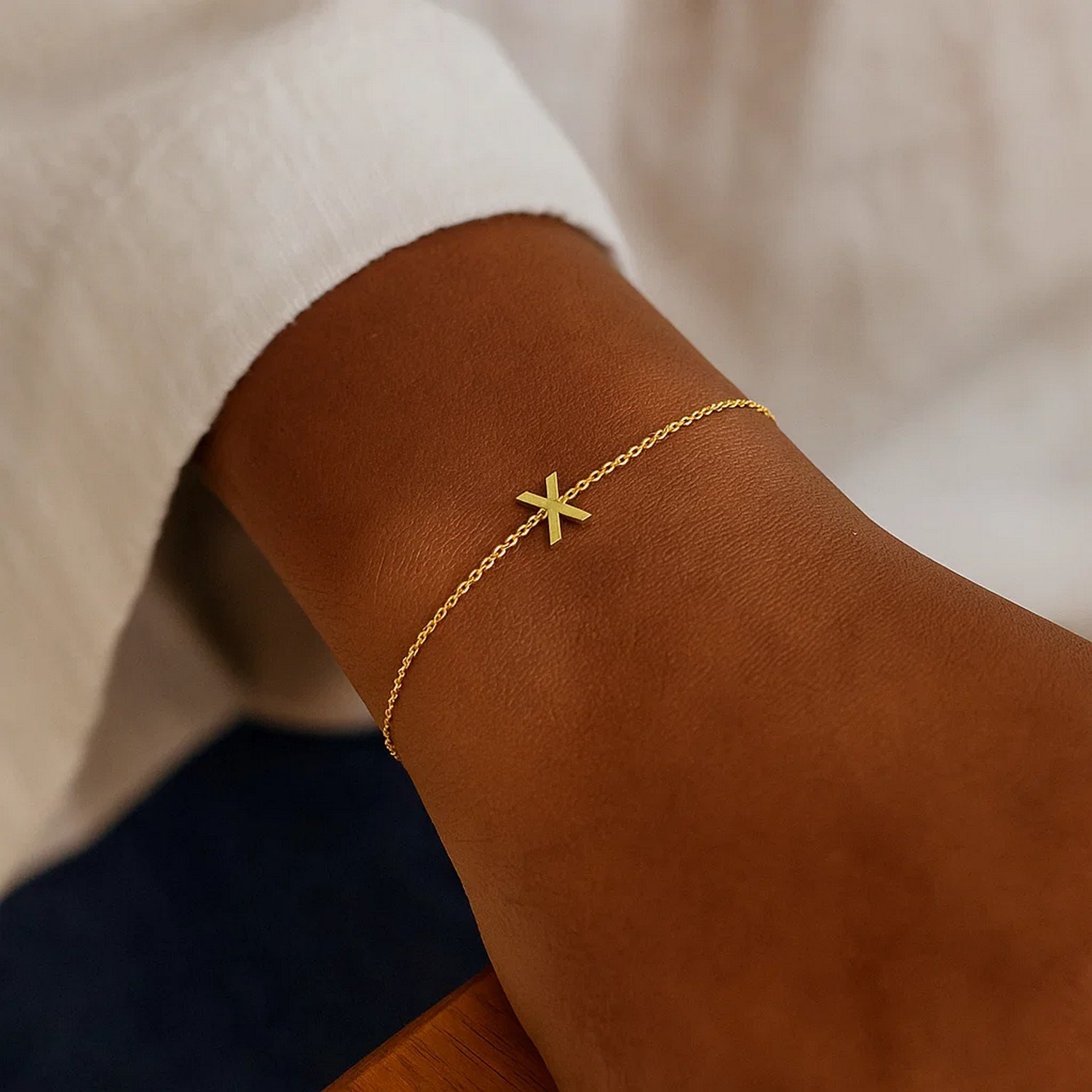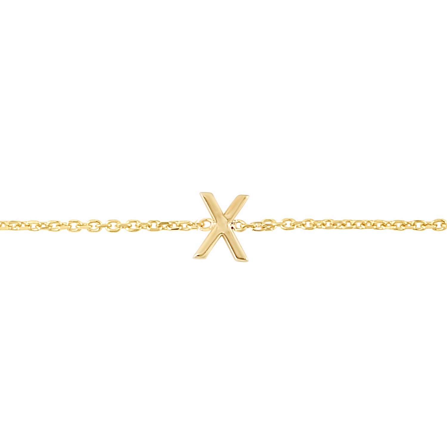 Real 14K Yellow Gold Mini Initial X Bracelet