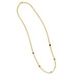 14K Yellow Gold Multi Color Gemstone Curb Chain Necklace