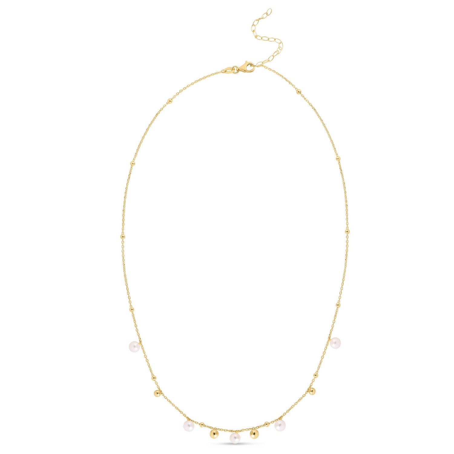 14K Yellow Gold Beaded Scattered Pearl Necklace