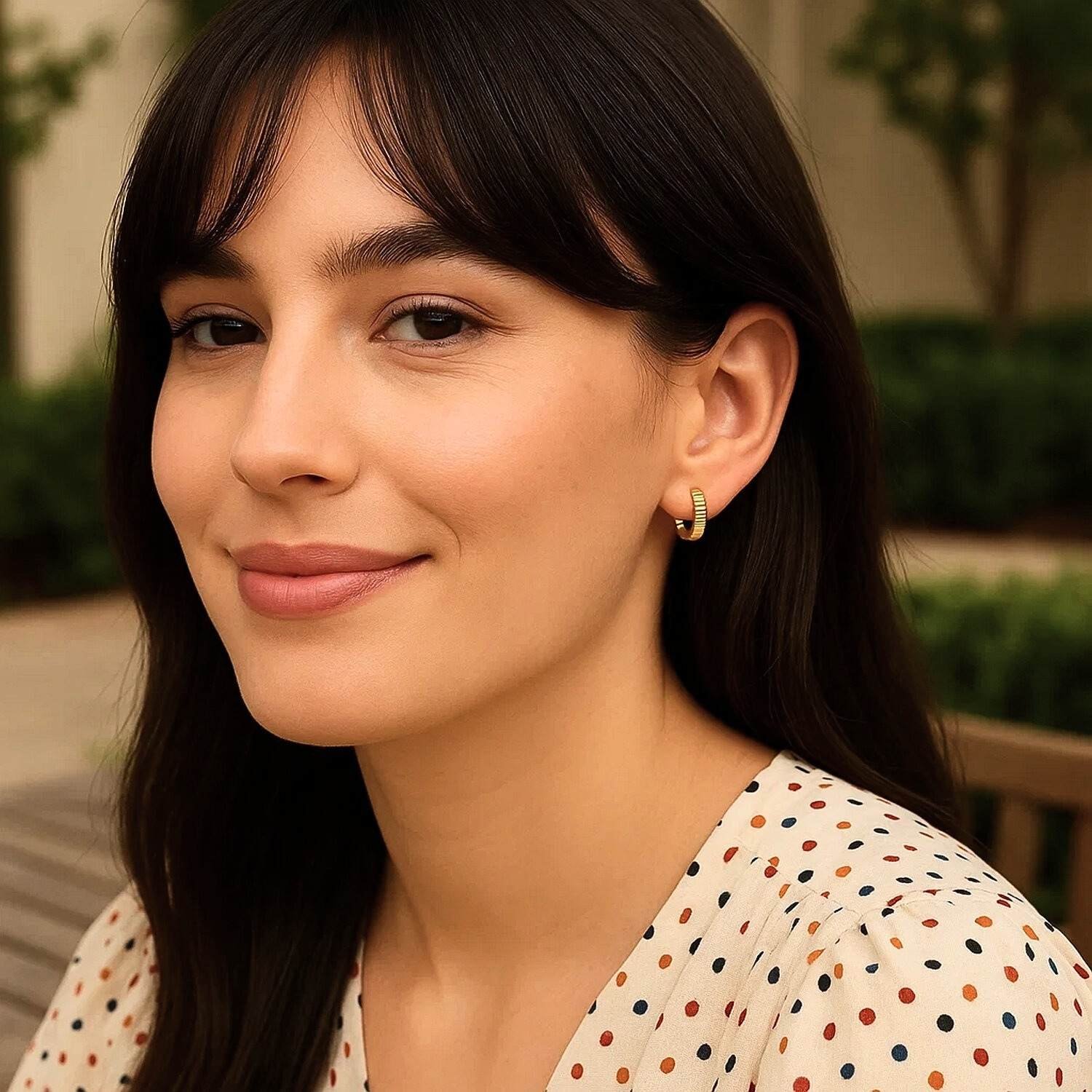 Real 14K Yellow Gold Tiny Ribbed Hoop Earrings are a timeless fine jewelry piece that highlights elegance with their simple lines and ribbed surface. They are a minimal detail for everyday wear and a stylish accessory for special occasions. Order online now to wear the quality of real gold and the warm glow of the textured design every day. Don’t miss out on free shipping and special discount opportunities. enjoy the perfect blend of style and quality.