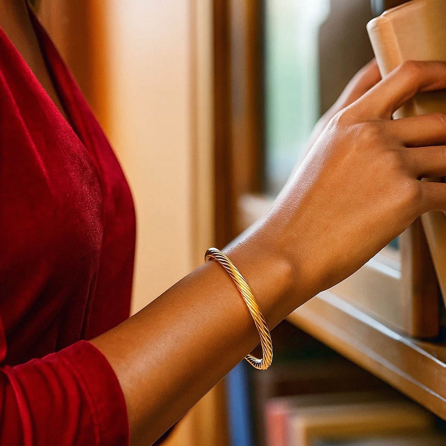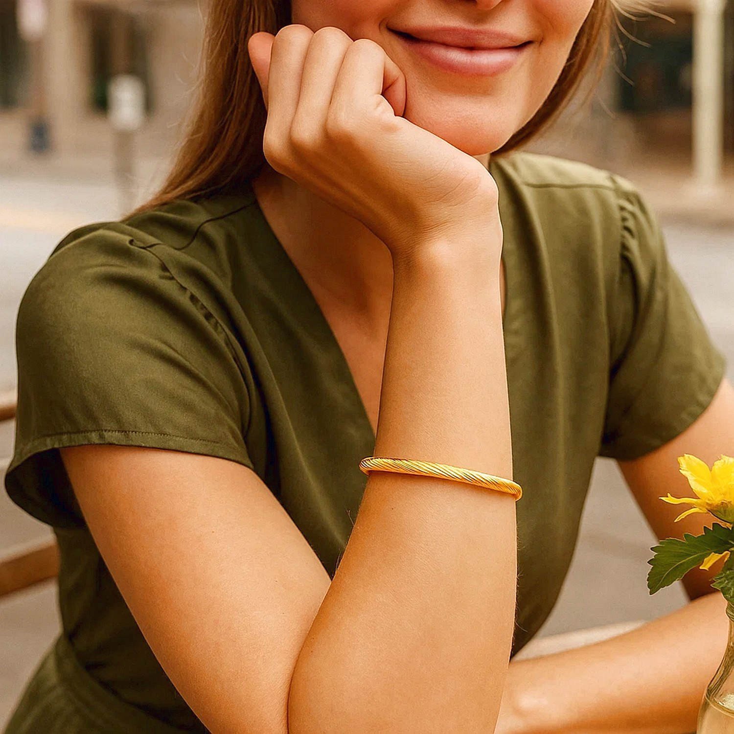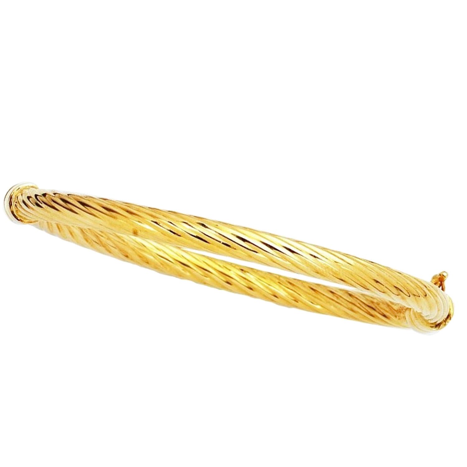 Real 14K Gold Sculpted Twisted 5mm Cable Bangle is one of the elegant pieces in the jewelry collection that stands out with its rope motif details. Order online now and take advantage of free shipping and special campaign opportunities.