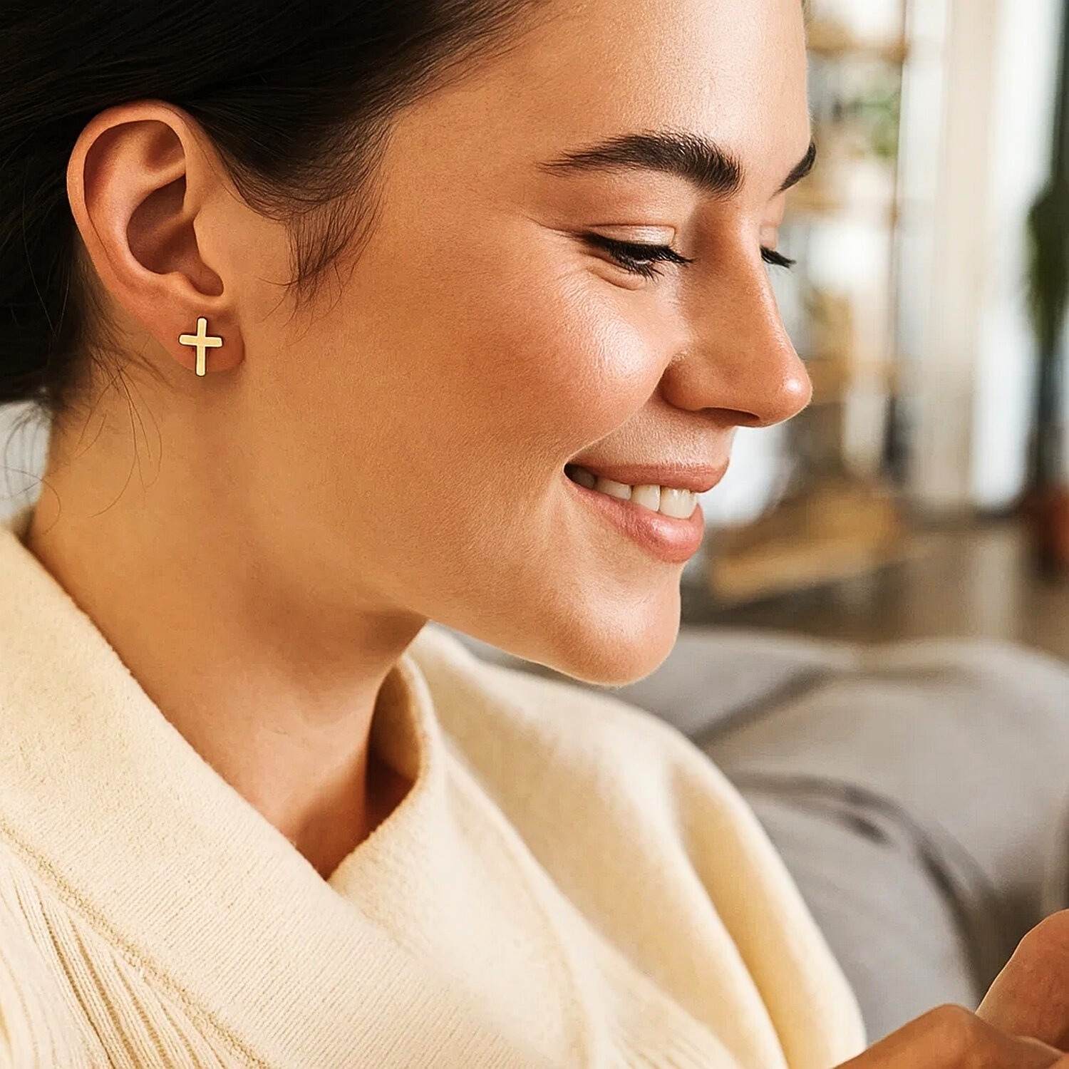 Real 14K Yellow Gold Small Plain Cross Stud Earrings are the ideal choice for those who want to reflect their faith in an elegant way. They offer a meaningful detail for everyday wear and an emotional gift alternative for special occasions. Buy online now and take advantage of free shipping and special discounts.