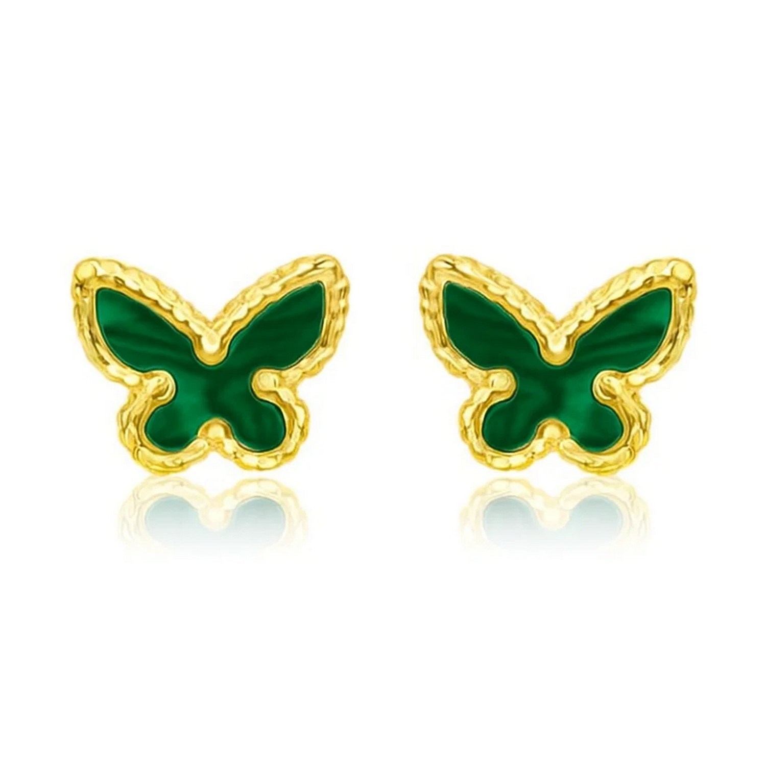 Introducing our 14K Yellow Gold Primavera Malachite Butterfly Stud Earrings, a perfect blend of elegance and charm. These polished studs feature delicate butterfly designs adorned with vibrant malachite inlays, symbolizing transformation and growth. Crafted from high-quality 14k yellow gold, they ensure lasting shine and durability. The secure push-back closure provides comfort and ease for daily wear or special occasions. Elevate your jewelry collection with these timeless earrings that seamlessly complement any outfit.