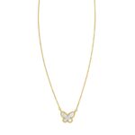 The 14K Yellow Gold Primavera Mother of Pearl Butterfly Necklace is designed with an elegant butterfly pendant inlaid with shiny pearls (MOP) on a carefully polished 14K solid yellow gold chain. The 18-inch chain provides comfortable wear with a secure lobster clasp closure. This stylish and meaningful design will complement your everyday outfits or stand out as a striking accessory on special occasions.