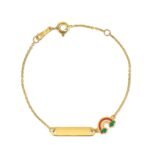 A cheerful touch for little wrists, this 14 k yellow gold rainbow children’s bracelet brings color and joy to any day. The dainty design and blank tag make it a sweet keepsake for special occasions or everyday wear.