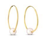 14K Yellow Gold Floating Pearl Endless Hoop Earrings, with their simple form and delicate pearl detail, can be worn with both everyday outfits and special occasion attire. Appealing to all ages and styles with their chic look, this design offers both elegance and sophistication. Order now and don’t miss out on free shipping and special discounts.