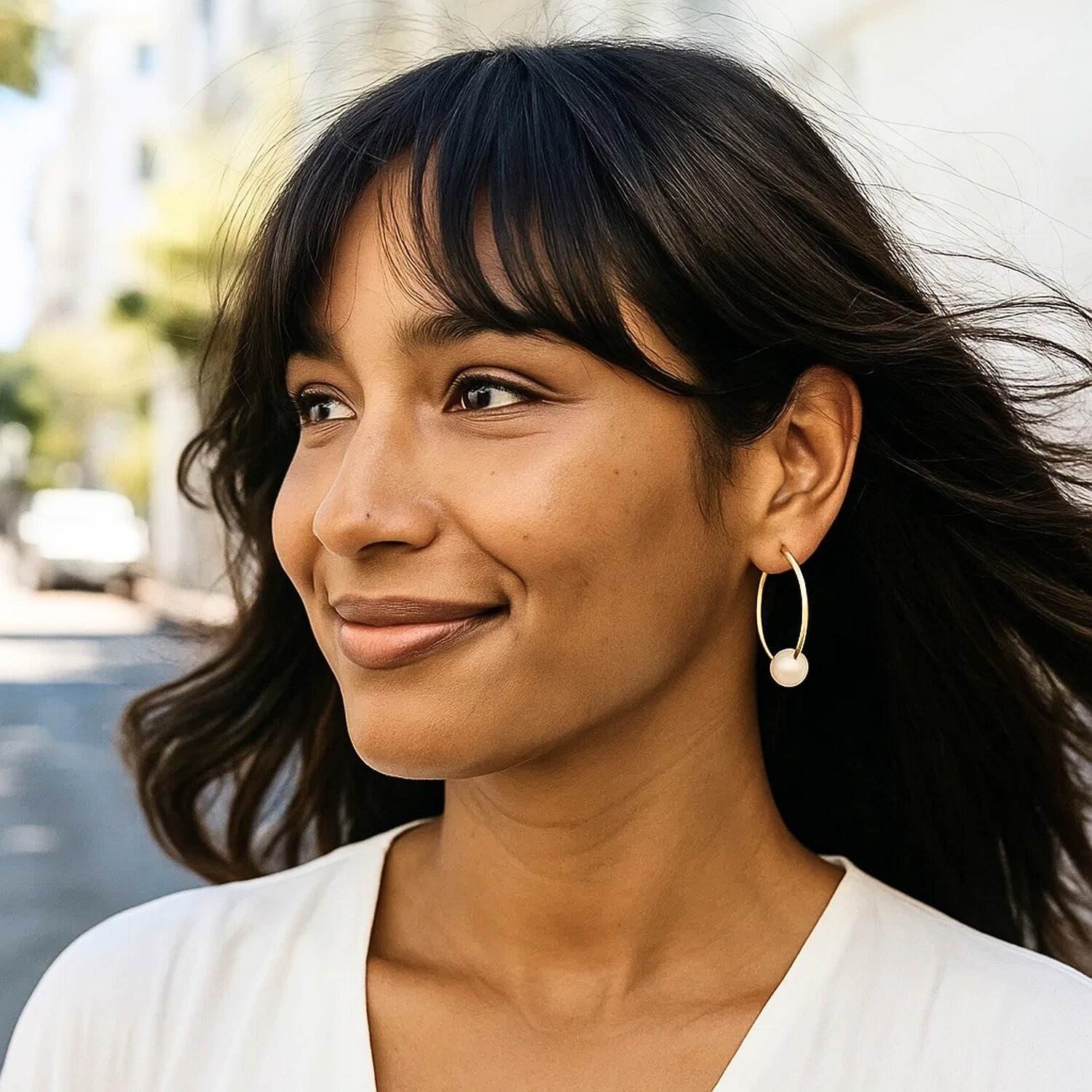 14K Yellow Gold Floating Pearl Hoop Earrings add a unique touch to any style with their dainty pearl detail and classic hoop shape. Crafted from genuine 14K yellow gold, these earrings are tarnish-resistant, nickel-free, and maintain their shine for years. The endless hoop design offers a simple yet eye-catching look, while the pearl detail adds a touch of fine jewelry elegance. Their lightweight construction makes them suitable for everyday wear.