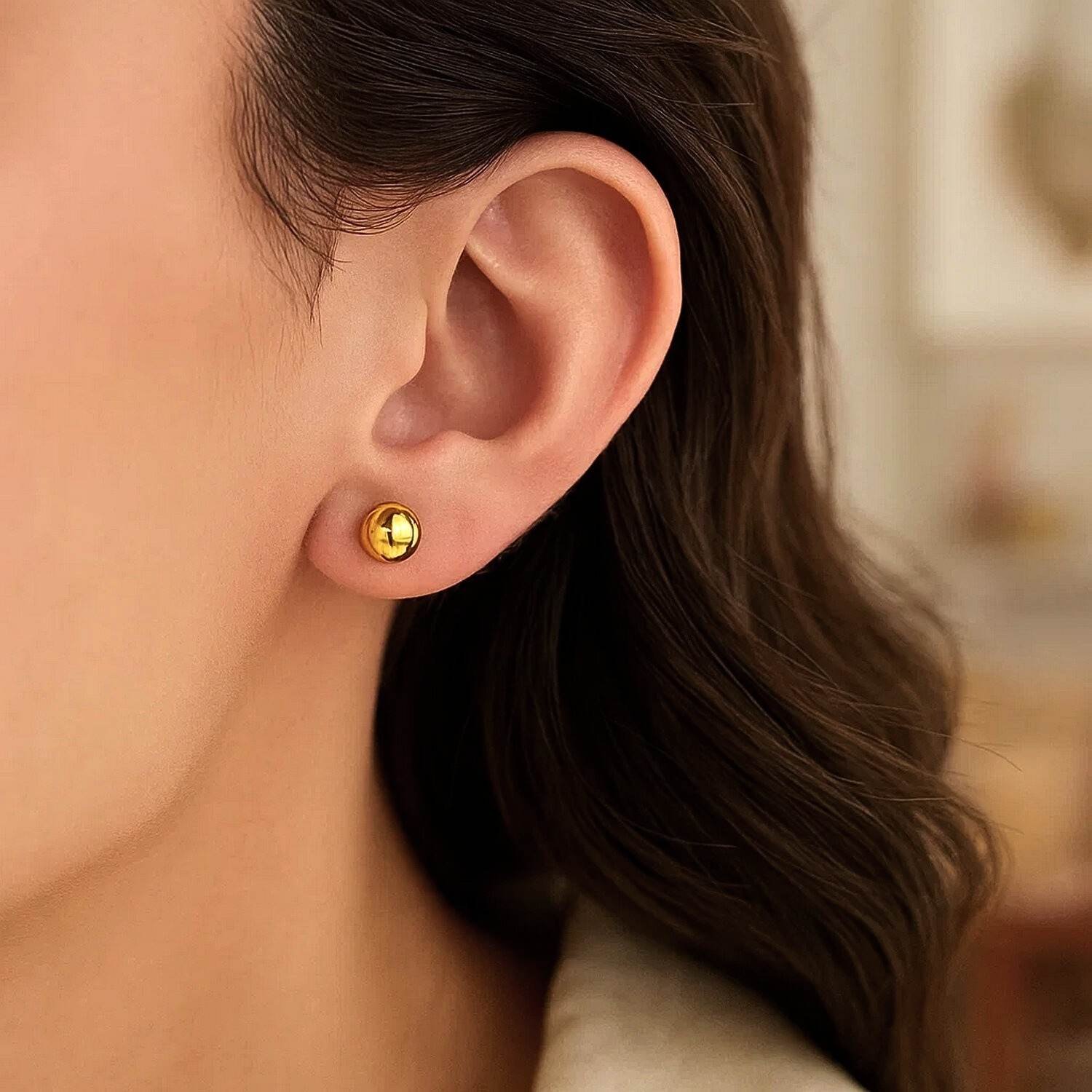 14K Yellow Gold Globe 7mm Ball Stud Earrings are an example of fine jewelry craftsmanship that complements any style with its simple elegance. Crafted from genuine 14K yellow gold, these classic sphere-shaped stud earrings stand out with their timeless design, perfect for both everyday wear and special occasions. Thanks to their solid gold construction, they do not tarnish, are nickel-free, and retain their original shine for years.