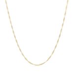 This chain’s lightweight design makes it ideal for everyday wear. Its shimmering gold hue enhances any neckline, making it suitable for casual outings or formal events. Pair it with a pendant for a personalized touch or wear it solo for minimalist elegance.