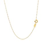 The 14 k Yellow thin Gold Singapore Chain Necklace is a delicate and elegant accessory that adds a subtle touch of sophistication to any outfit. Perfect for layering or wearing alone, this chain is designed to complement your style effortlessly.