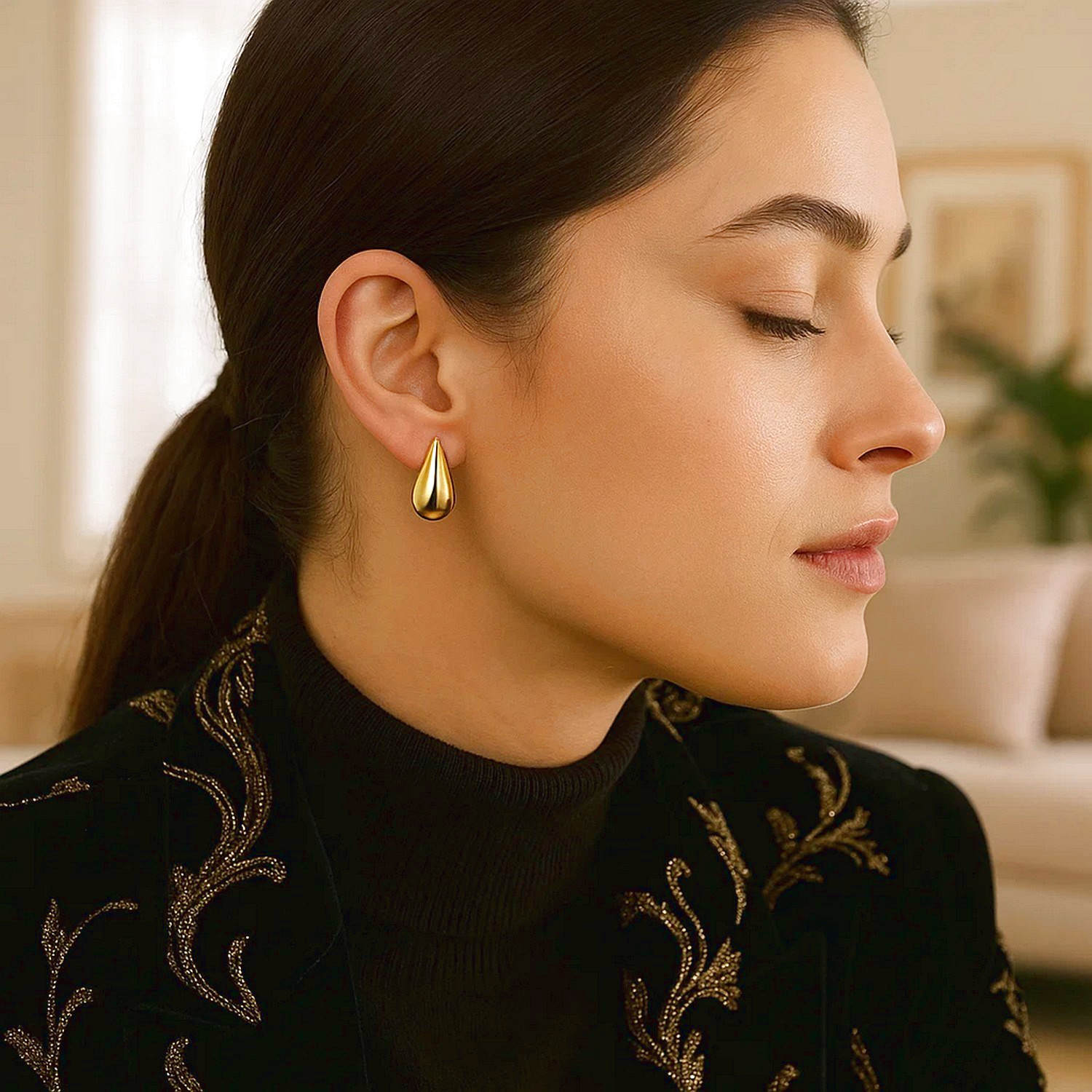 14K Yellow Gold Small Chunky Raindrop Stud Earrings reflect modern elegance with their simple yet eye-catching teardrop shape. Their polished surface perfectly reflects light, while their soft lines give the ear a refined look. Thanks to their genuine 14K yellow gold construction, they are tarnish-resistant, nickel-free, and hypoallergenic. They offer understated elegance for daily wear and serve as a sophisticated accessory for special occasions.