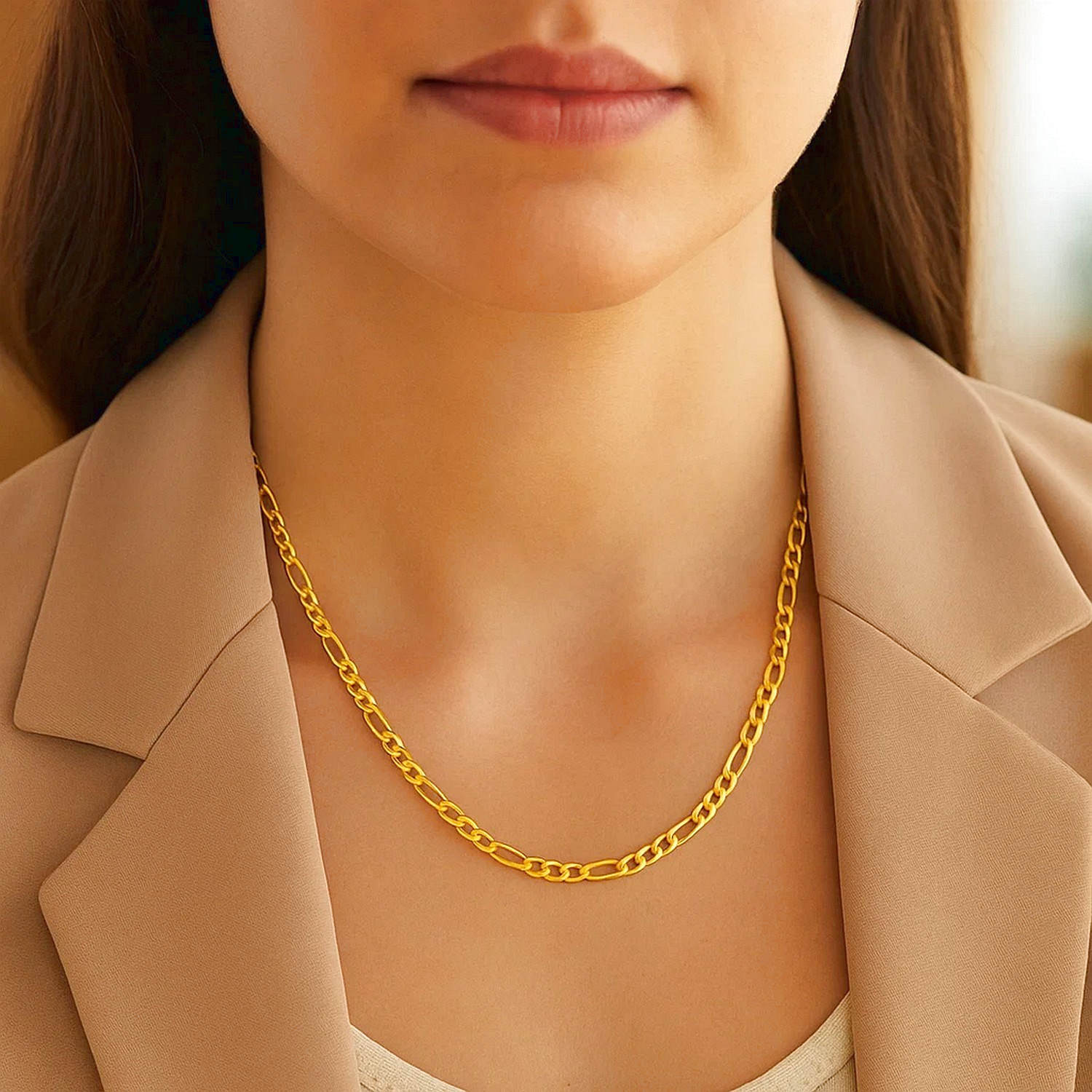 Real 14k Yellow Gold 4mm Figaro Chain Necklace offers a clean design suitable for everyday wear with its simple form and balanced proportions. Handcrafted with fine jewelry quality, this necklace is lightweight for comfortable all-day wear. Its solid 14K yellow gold construction is hypoallergenic and tarnish-resistant, maintaining its shape and shine over time. The balanced arrangement of short and long links in the Figaro chain creates a distinctive look. It offers a simple style on its own and easily complements layered combinations when worn with other necklaces. It can be chosen as a meaningful gift alternative for birthdays, anniversaries, or special occasions.