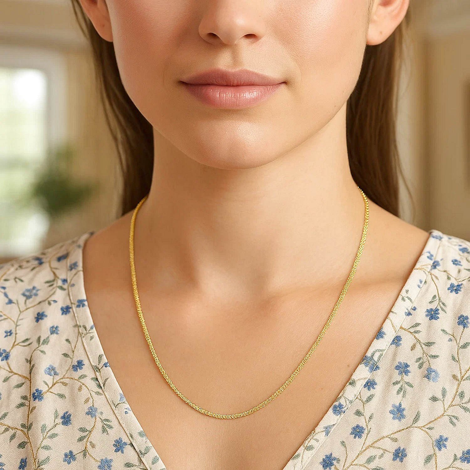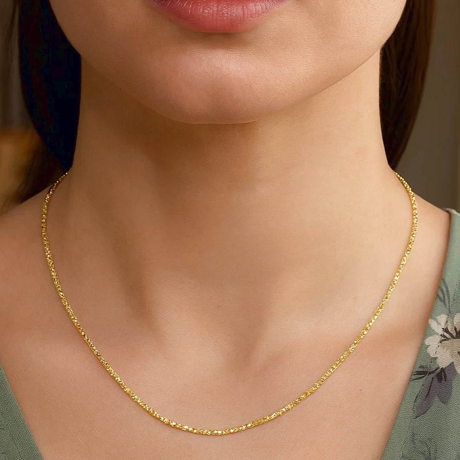 14k Yellow Gold Sparkle 1.5mm Thin Chain Necklace, with its simple form and balanced proportions, offers an elegant design suitable for everyday wear. Handcrafted with fine jewelry quality, this chain necklace is lightweight for comfortable all-day wear. Its 14k gold construction is hypoallergenic and tarnish-resistant, maintaining its shape and shine for years.