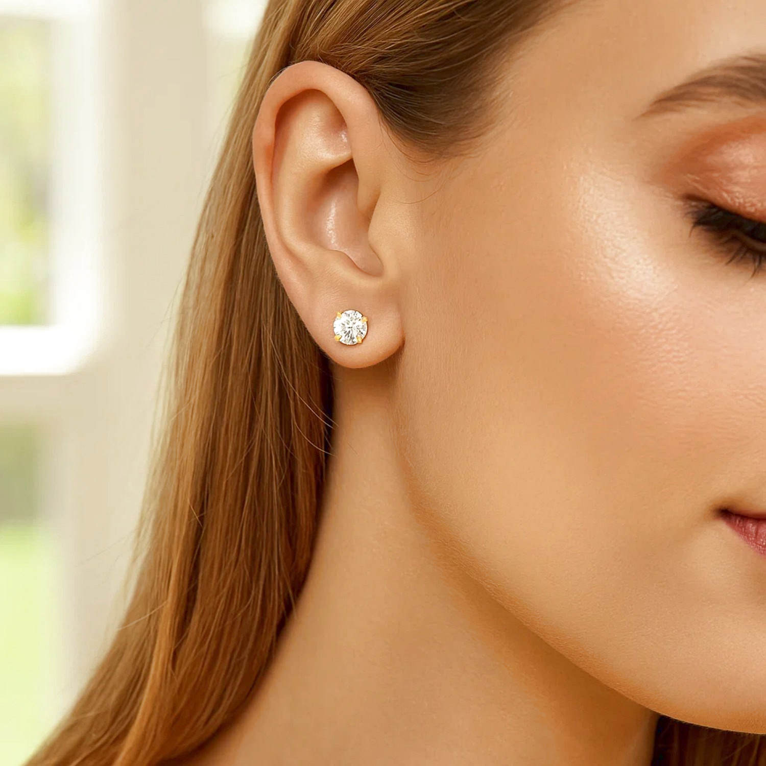 14K Yellow Gold 6mm CZ Stud Earrings add a touch of elegant sparkle to any outfit with their simple sophistication. Thanks to their genuine gold construction, they retain their shine for years and are hypoallergenic. Ideal for everyday wear or as a special occasion gift, order these classic earrings online now and don’t miss out on free shipping and special offers.