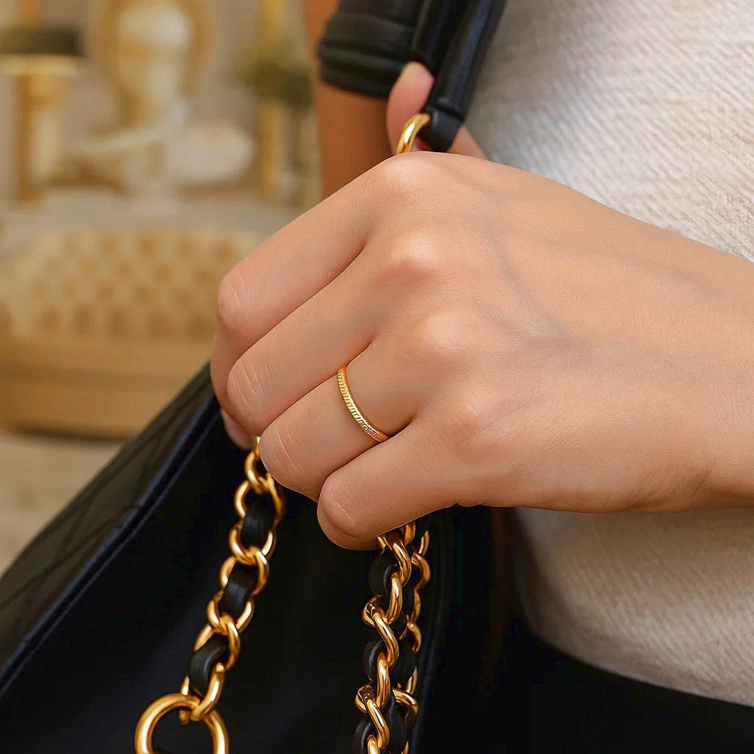 14k Yellow Gold Textured Comfort Fit Wedding Band 2.5mm offers a timeless design suitable for everyday wear as a wedding ring, with its simple form and balanced proportions. Handcrafted with fine jewelry quality, this ring provides all-day comfort thanks to its comfort fit design. The 14K gold construction is hypoallergenic and tarnish-resistant, maintaining its shape and luster for years. Its lightly textured surface adds a modern and unique touch to the classic wedding band style. It offers a strong and meaningful look on its own, and also complements layered combinations when worn with other rings. It can be chosen as a lasting and meaningful piece symbolizing marriage, anniversaries, or special moments.