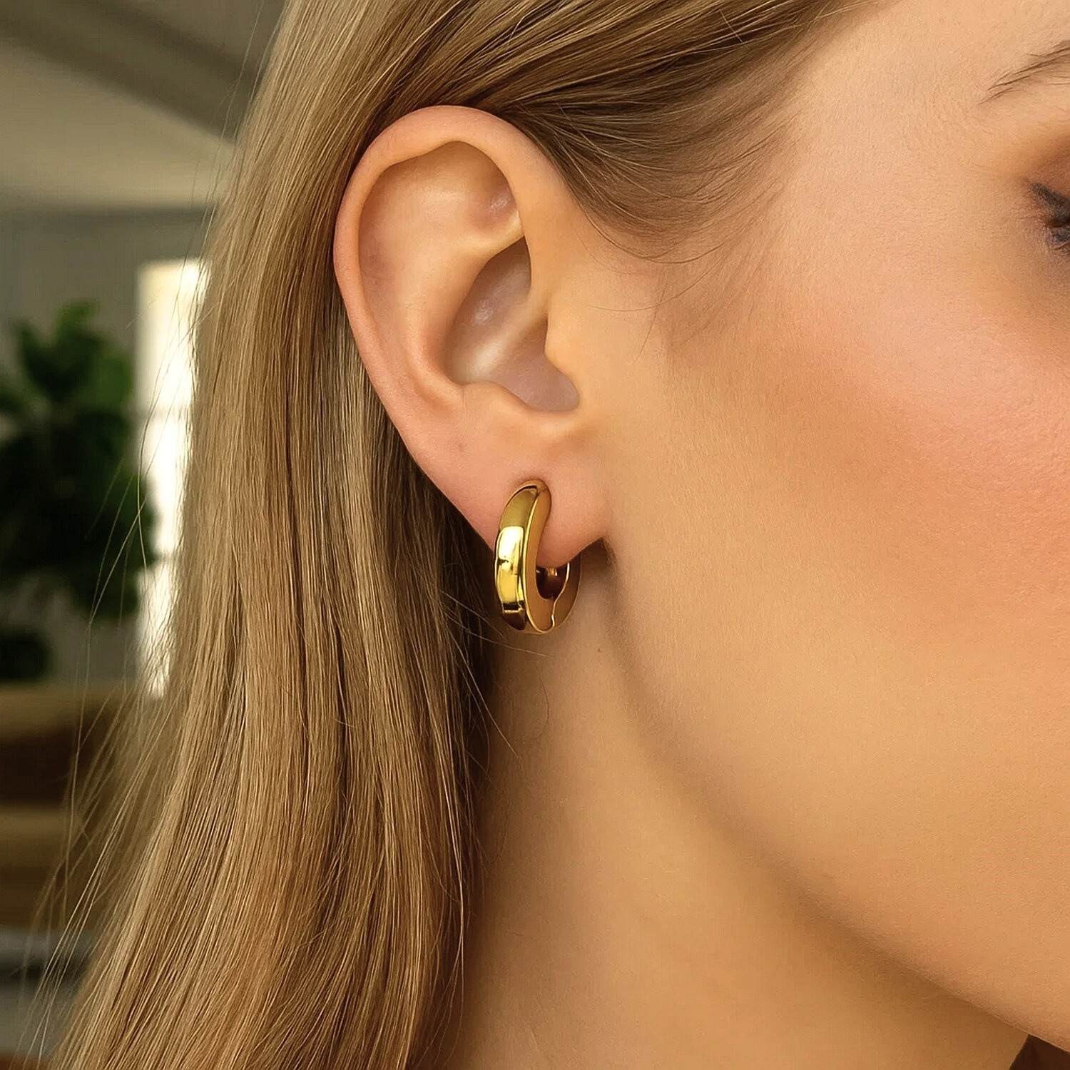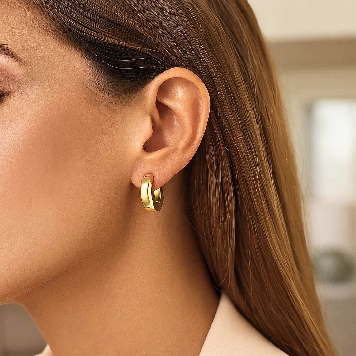 14K Yellow Gold 4mm Thick 16mm Hoop Earrings feature a simple yet bold design that complements any style. Crafted from genuine 14k yellow gold, their 4mm thickness provides a full, eye-catching look on the ear. The polished surface highlights the warm tones of the gold. They do not tarnish, are nickel-free, and are suitable for sensitive skin. They can be comfortably worn for everyday use as well as special occasions.