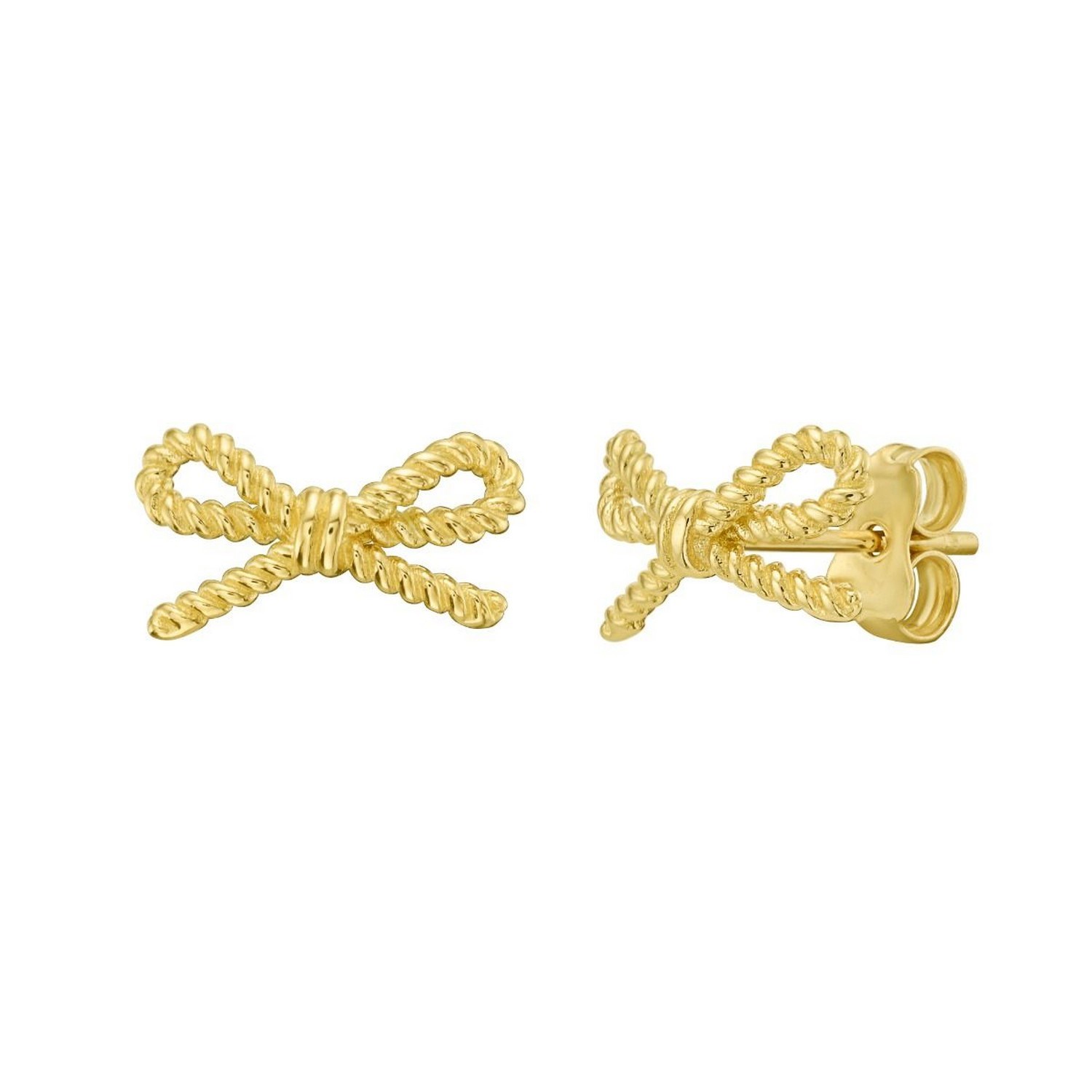 14K Yellow Gold Twisted Rope Large Bow Earrings