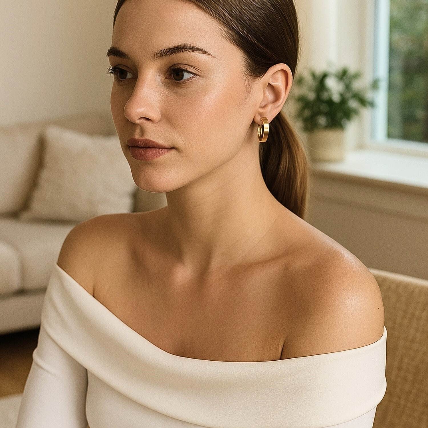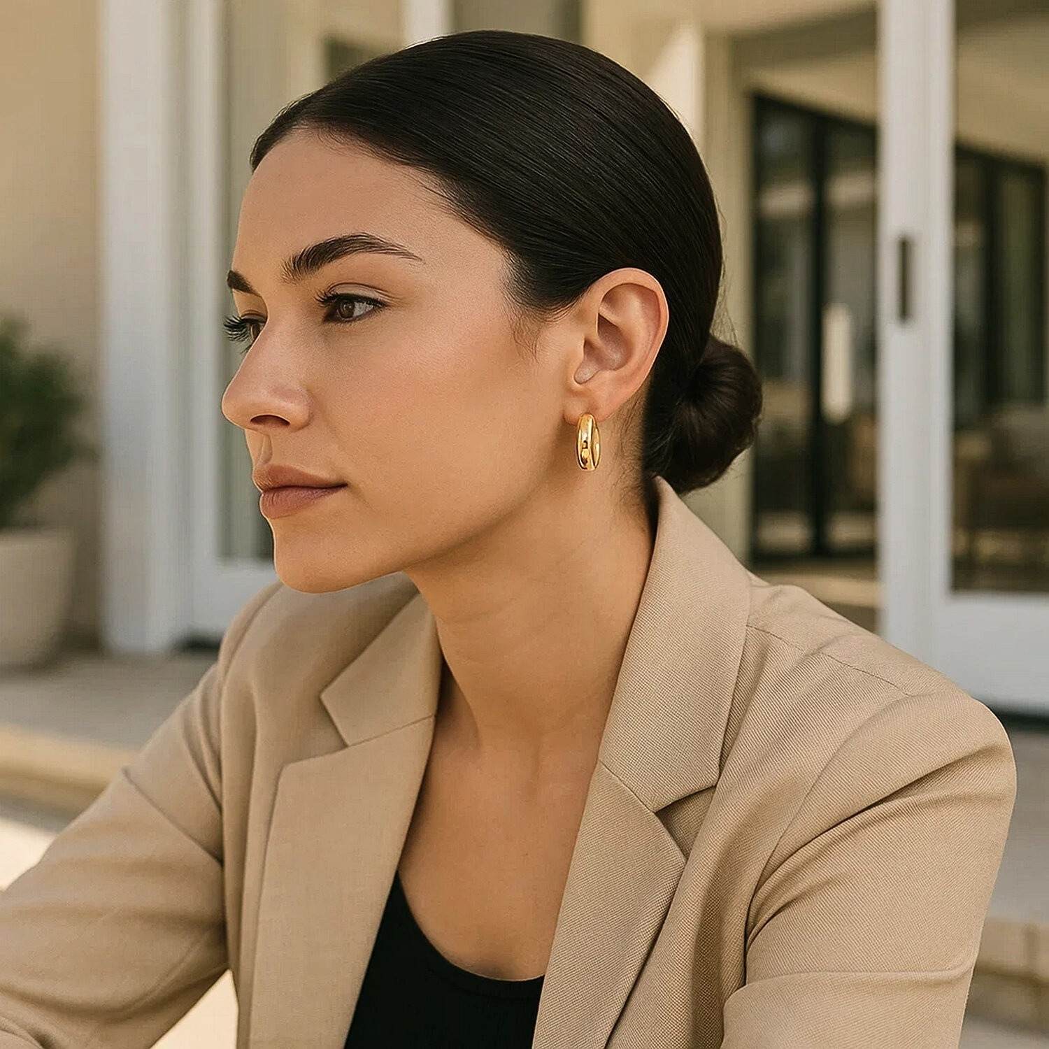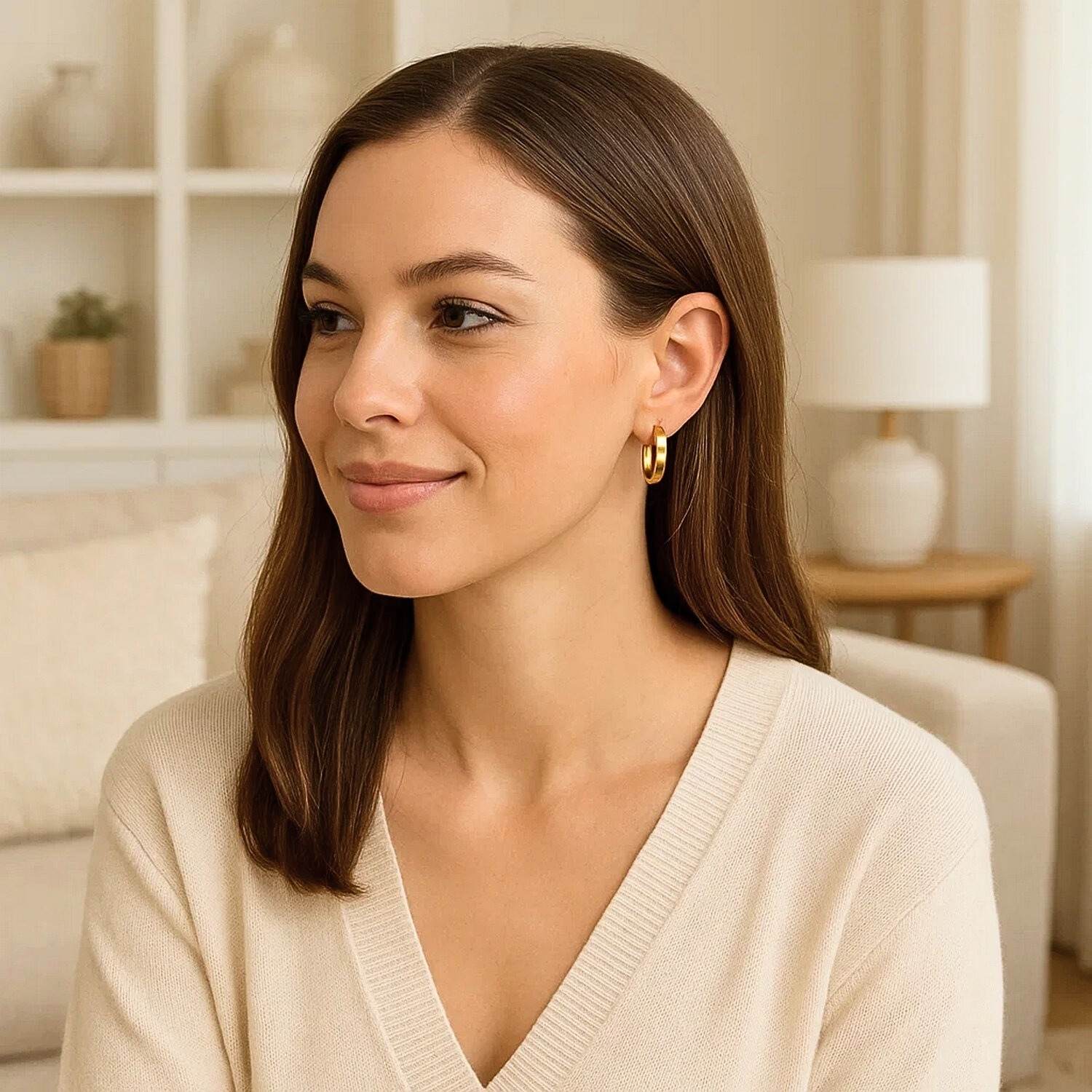 These women’s gold hoop earrings are the perfect choice for those seeking both elegance and meaning. They add a natural sparkle to everyday outfits and create a sophisticated shine on special occasions. Thanks to their durable construction and secure locking system, they retain their original form for many years.