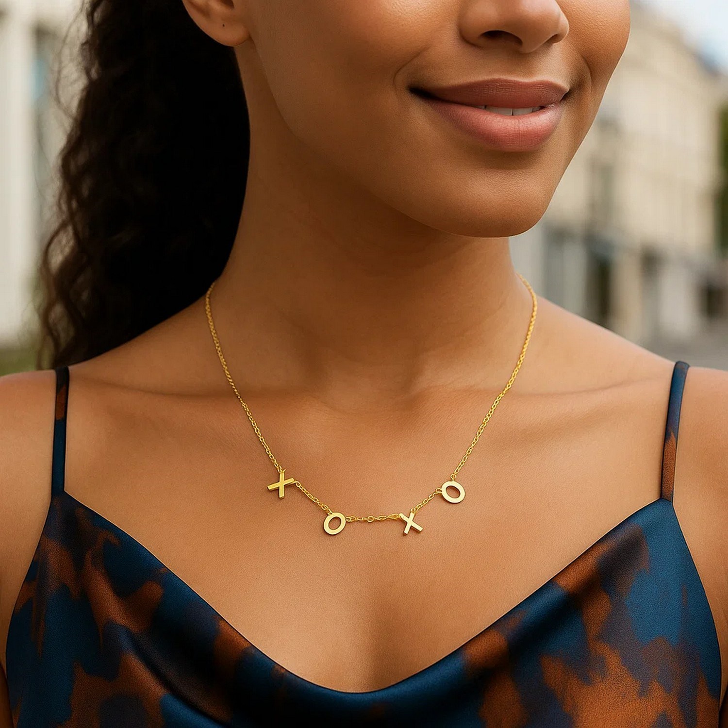 Real 14K Yellow Gold XOXO Necklace is an elegant necklace that offers a modern and charming style with its “XO” details. Its shiny gold surface does not tarnish and can be used safely on sensitive skin thanks to its hypoallergenic composition. Its light and elegant design allows you to add a personal touch by wearing it alone or combining it with other necklaces.