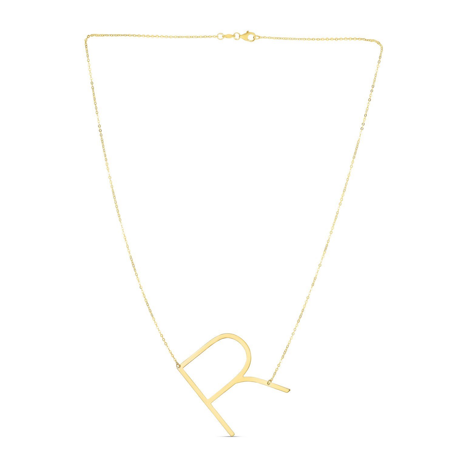 14K Yellow Gold Large Initial R Necklace