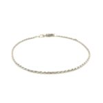 This 2.0 mm wide twisted diamond cut anklet, designed in 14 karat white gold, is 10 inches (approximately 25 cm) long. With its elegant and shiny design, this piece of jewelry is completed with a secure parrot clasp for safe use.