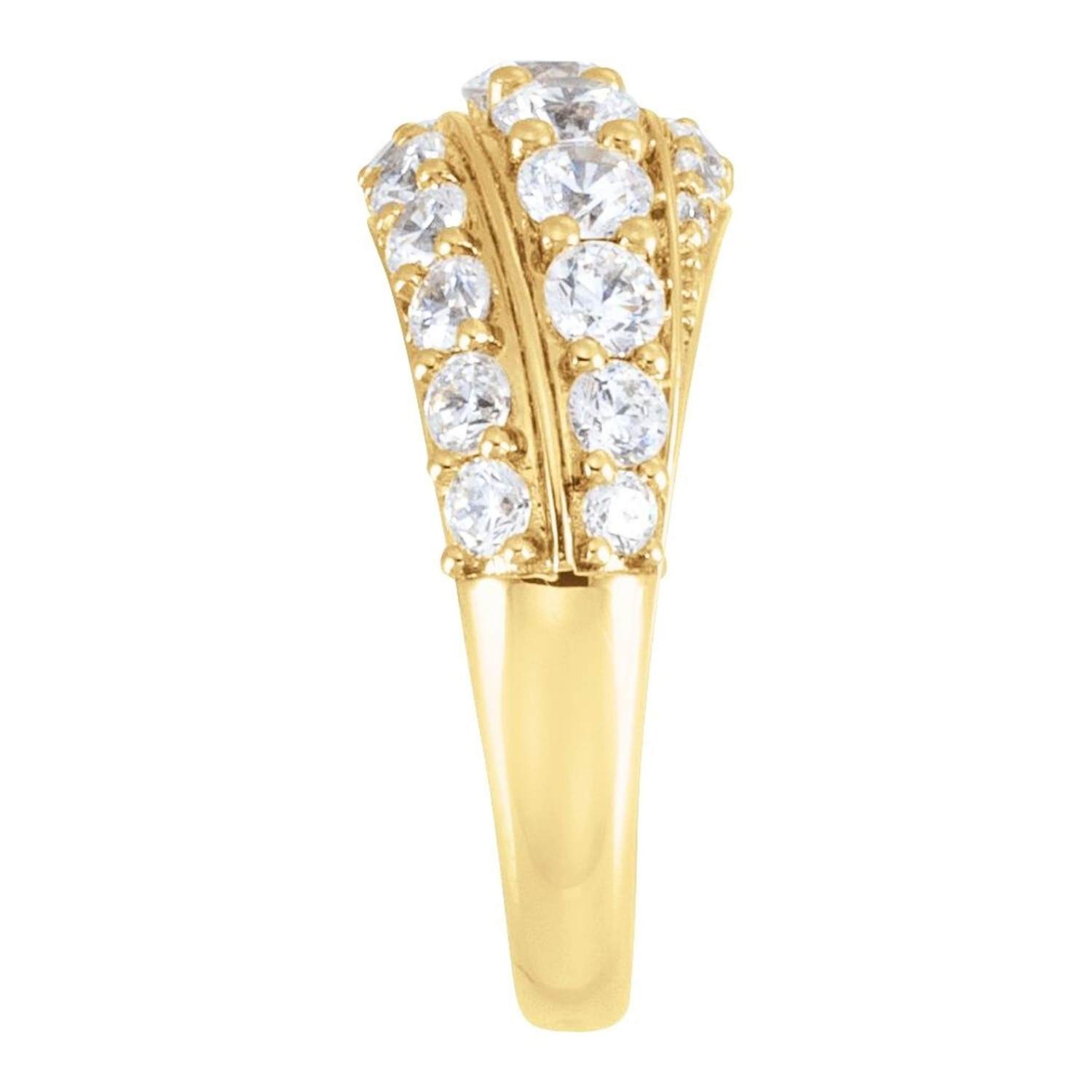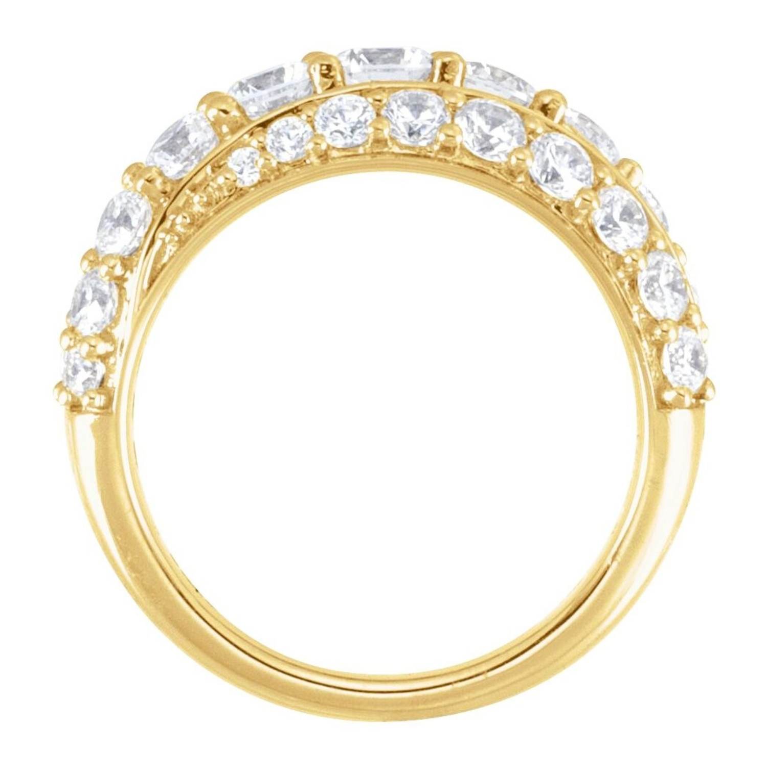Genuine 14K Gold Lab-Created Three-Tier Graduated Floating Diamond Ring, a special fine jewelry piece that combines luxury, elegance, and modern craftsmanship. Made from genuine 14K gold, it retains its shine for years with its tarnish-resistant composition. The ring’s three-row design creates a dynamic sparkle with stepped diamonds arranged in different directions on each row. While the stones in the middle row are arranged from small to large, the side rows feature a transition in the opposite direction. With a total stone weight of 2 1/4 carats, this ring offers a striking sparkle and flawless symmetry.