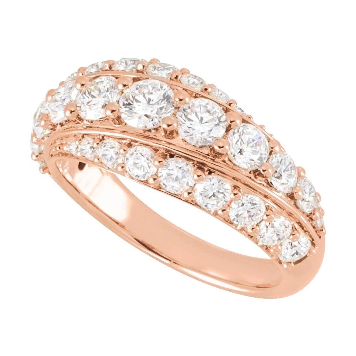 This sparkling design features 27 round-cut lab-grown diamonds of varying sizes. The stones range from 1.4 mm to 3.9 mm in size. The center row is arranged from small to large, while the side rows are arranged in the opposite direction. This arrangement gives the ring a dynamic light transition and unique depth. The stones, with VS clarity and F+ color quality, share the same chemical properties as natural diamonds and provide high brilliance.