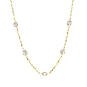 A thoughtful blend of tradition and style, this 14 k tri-color gold rosary chain necklace features delicate bead stations and cross accents along a classic cable chain. Its 17-inch length sits gracefully at the collarbone for everyday wear or special moments.