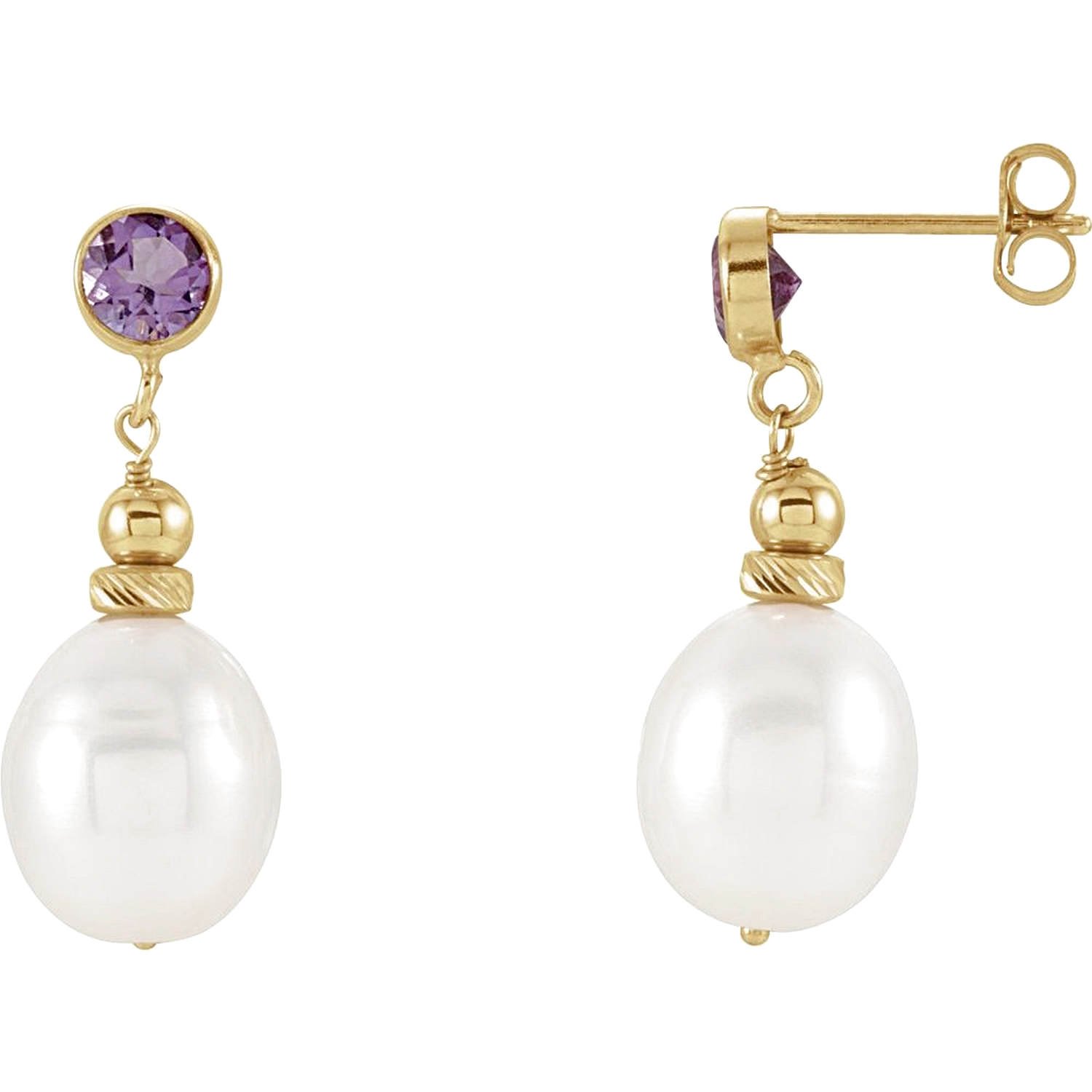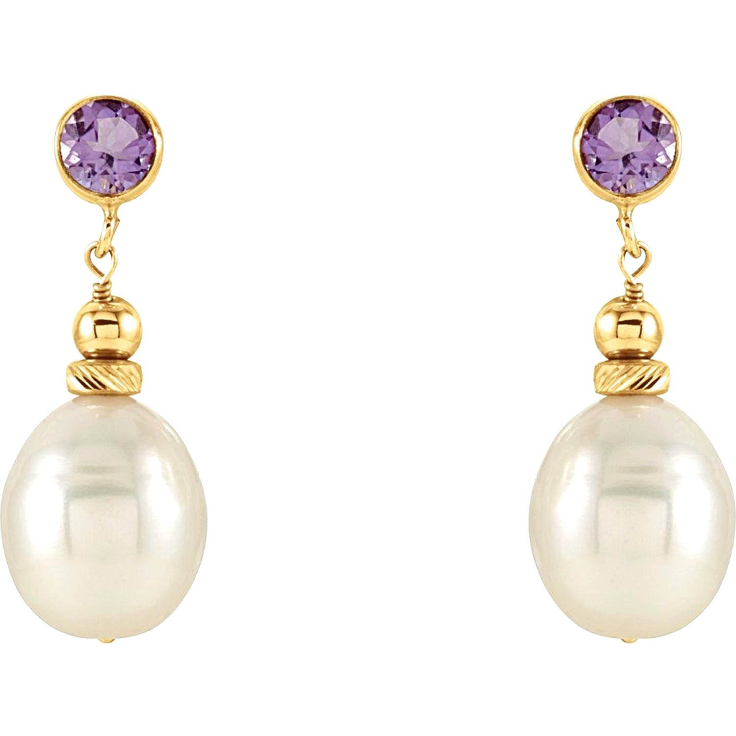 Order the 14K Yellow Gold Natural Amethyst and Pearl Drop Dangle Earrings online now to take advantage of discounted prices and free shipping.