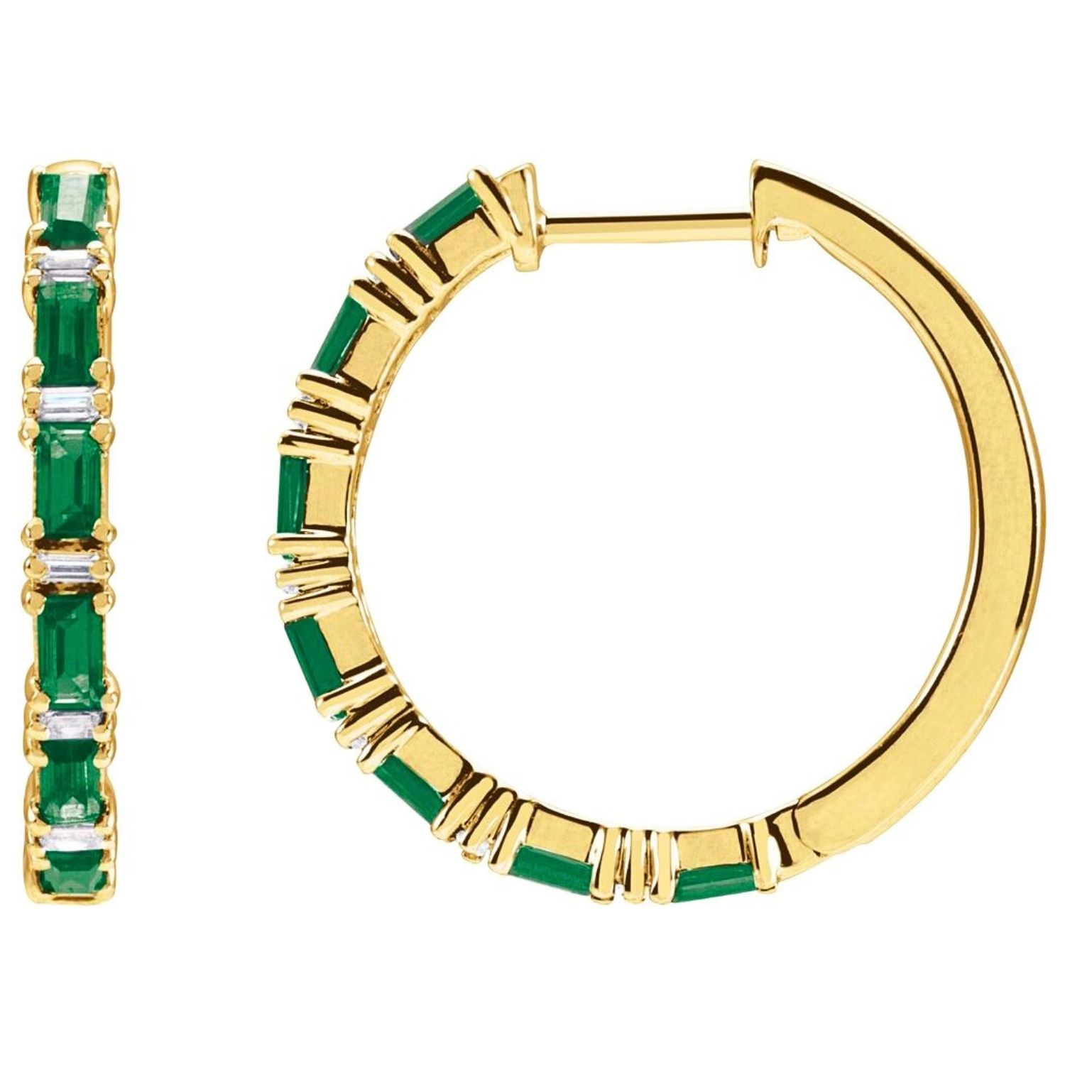 14K Gold Genuine Baguette Emerald and Diamond Hoop Earrings are a special piece that complements the elegance of every era with their balanced design and meticulous craftsmanship. Order online now to enjoy free shipping and special discounts.