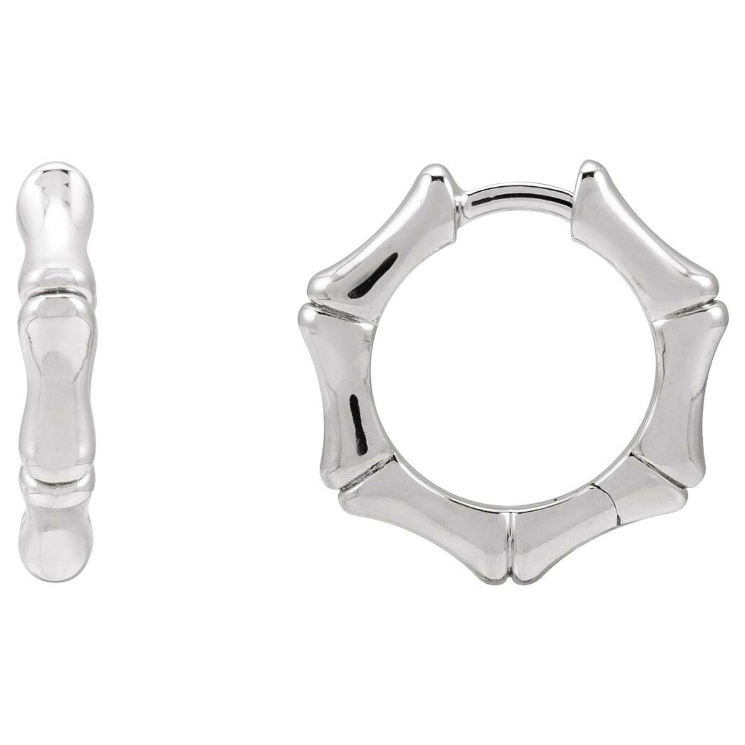 A perfect blend of modern simplicity and classic elegance, these Solid 14K White Gold Small Bamboo Hoop Earrings add a stunning sparkle to any outfit. They add a unique shine to every moment, from your everyday chic to evening events. Buy online now and take advantage of free shipping and special discounts.