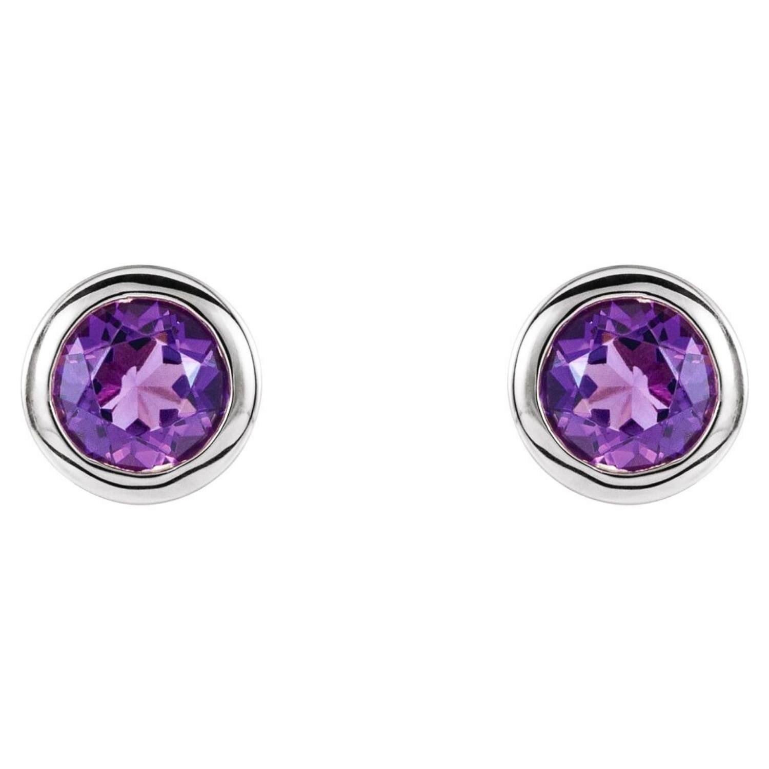 These earrings are designed with AA quality round cut natural amethyst stones. The vibrant purple tone of amethyst offers both a minimalist and eye-catching sparkle. The bezel setting completely surrounds the stone, providing a modern look and maximum durability for everyday wear.