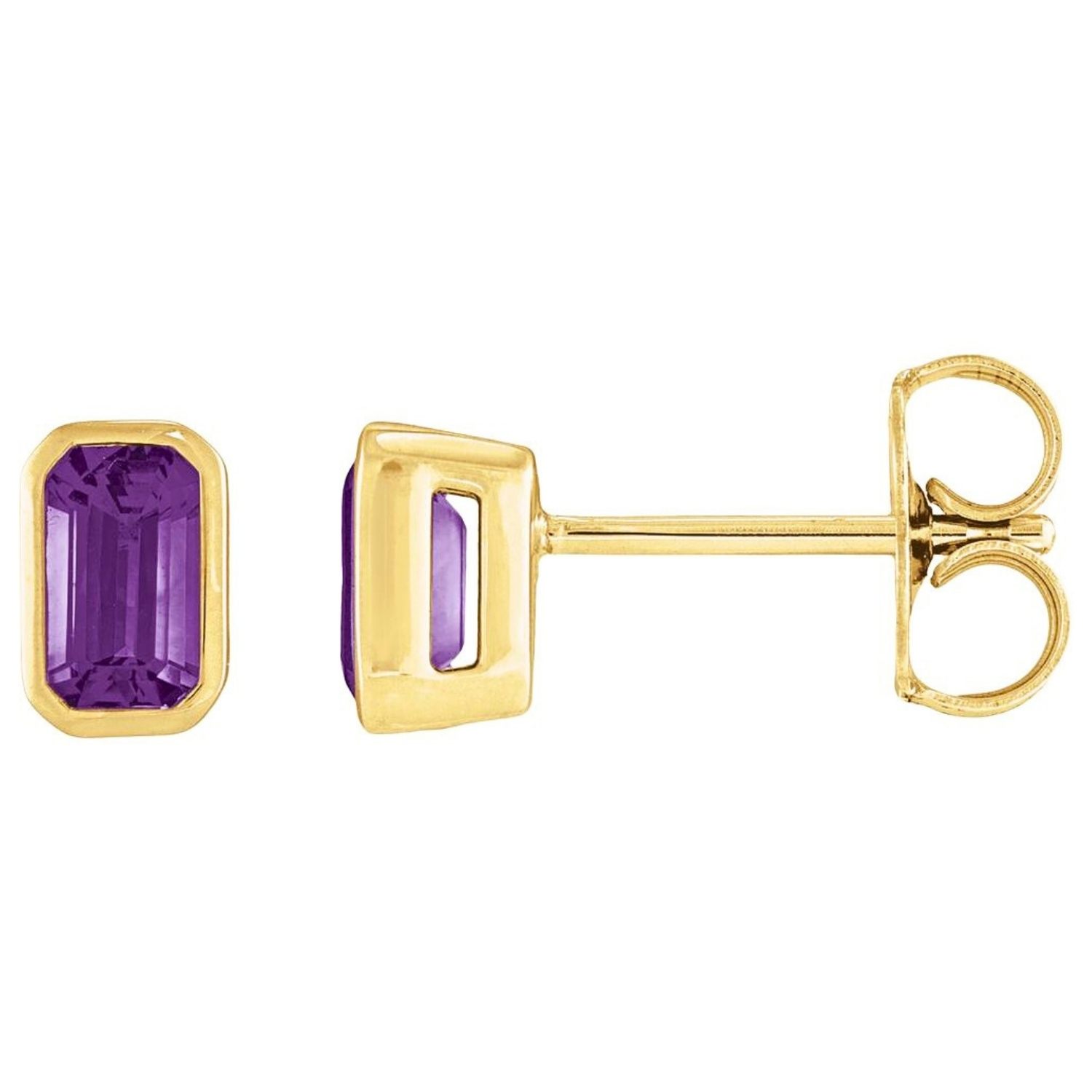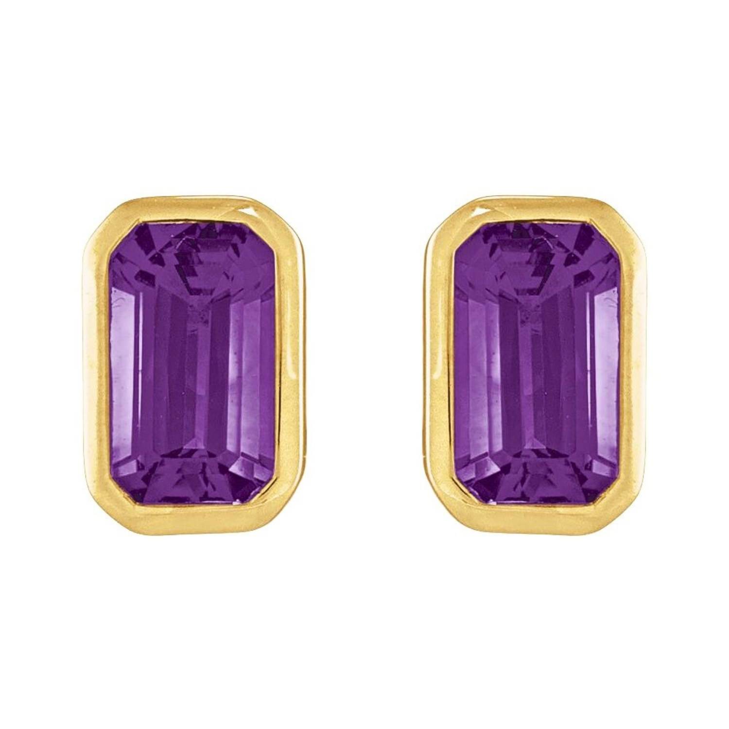 Order these 14K Gold Bezel-Set Emerald Cut Amethyst Stud Earrings online now to take advantage of special discounts and free shipping.