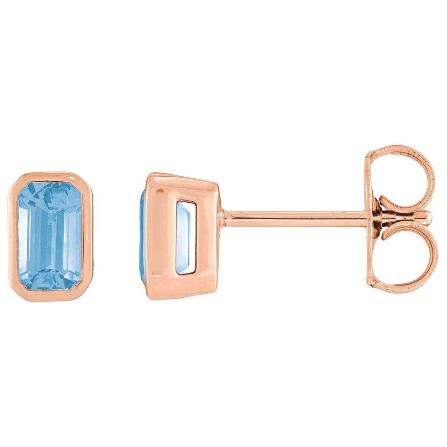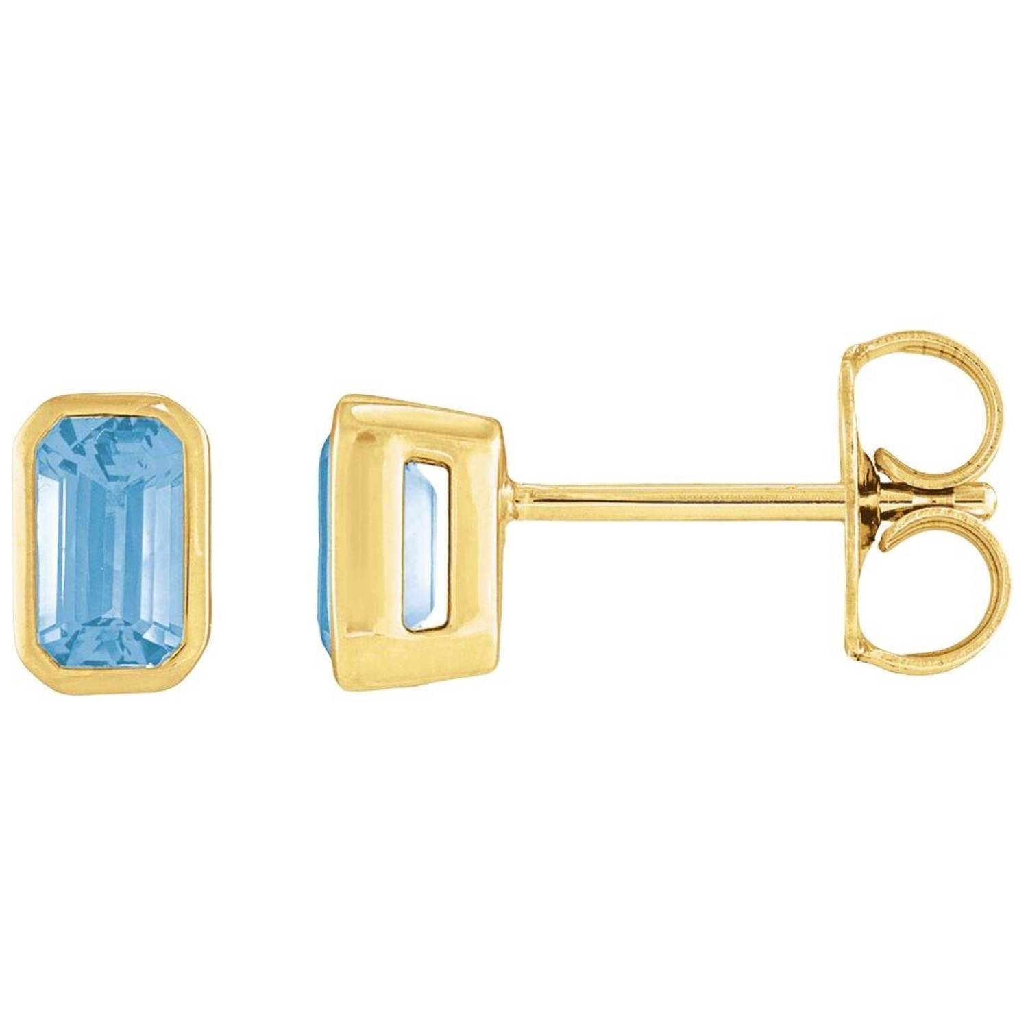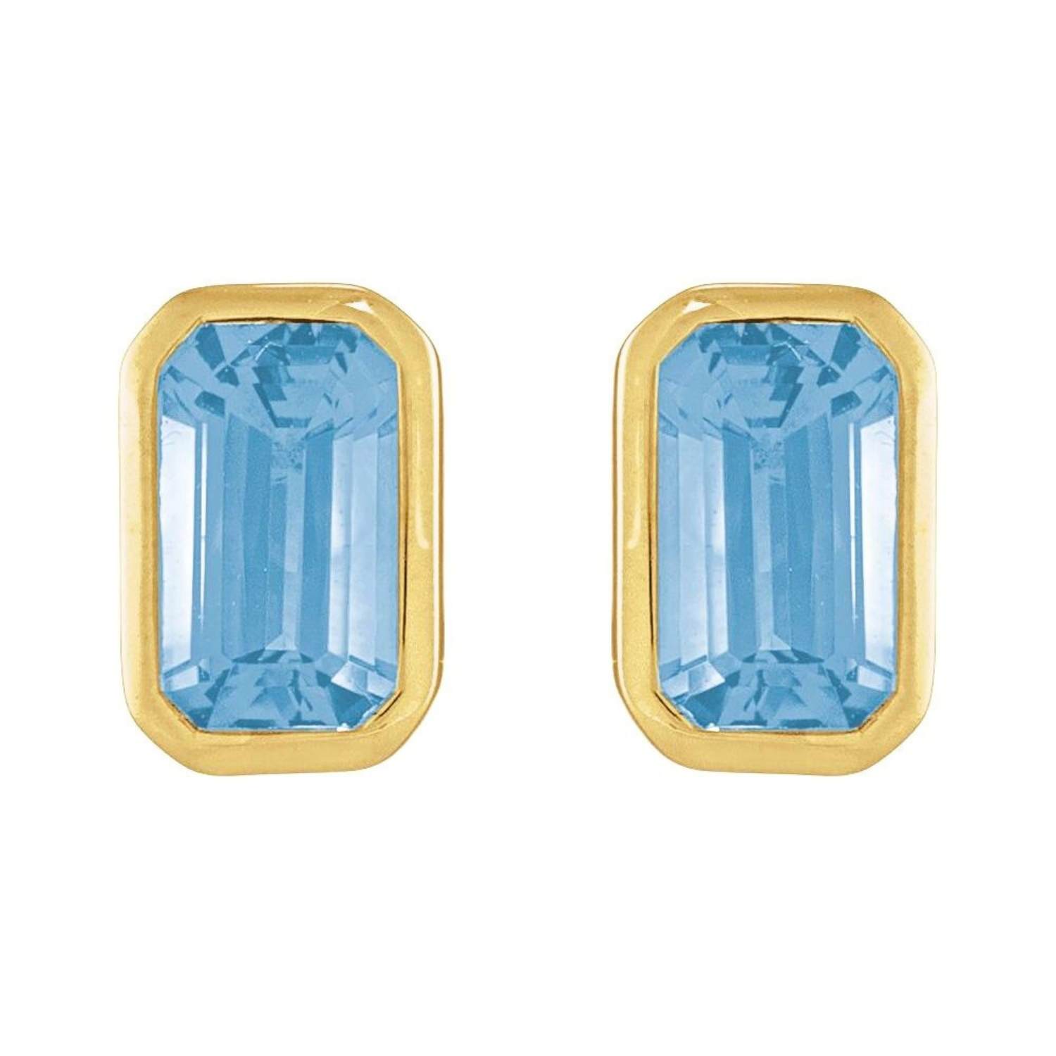 Bezel-Set Emerald Cut Sky Blue Topaz Stud Earrings 14K Gold