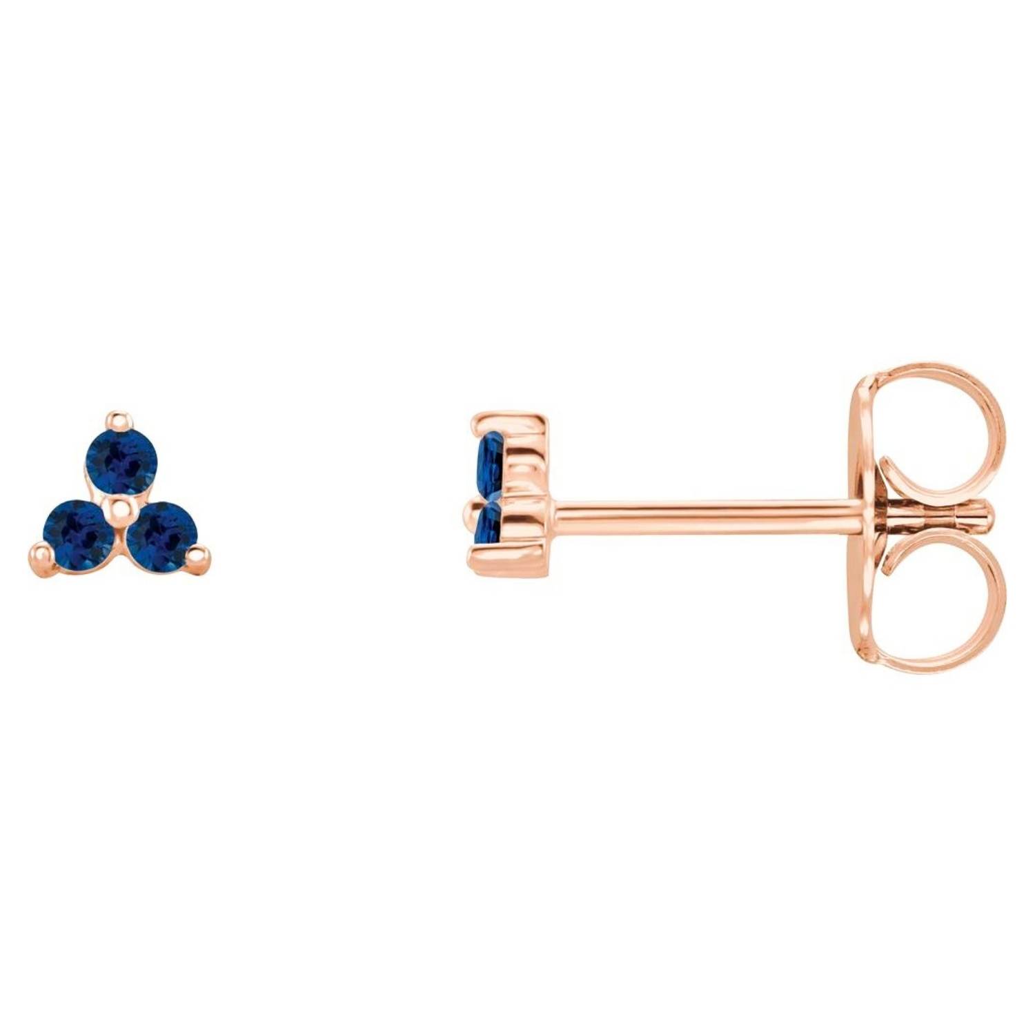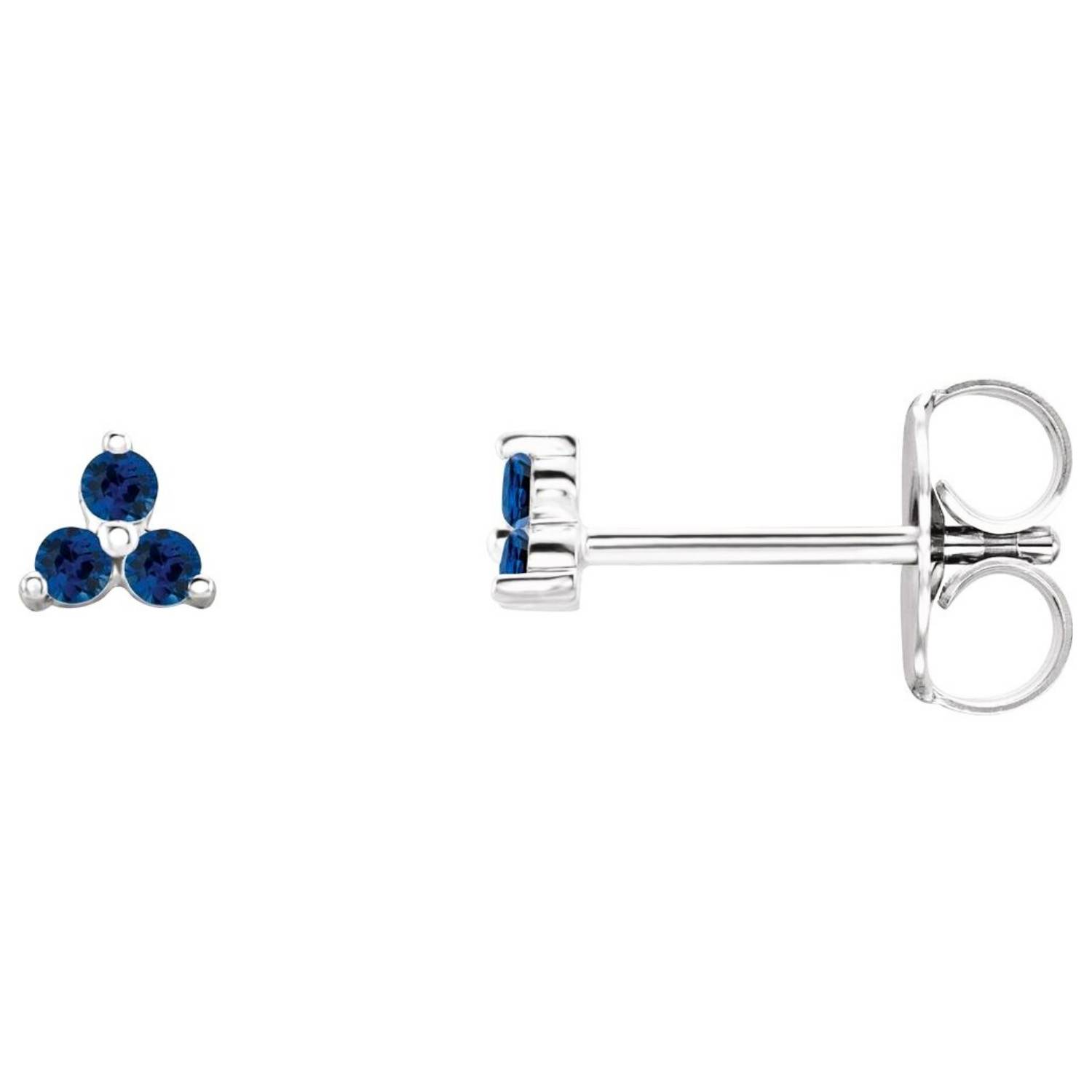 14K Gold Genuine Blue Sapphire Three Stone Cluster Stud Earrings