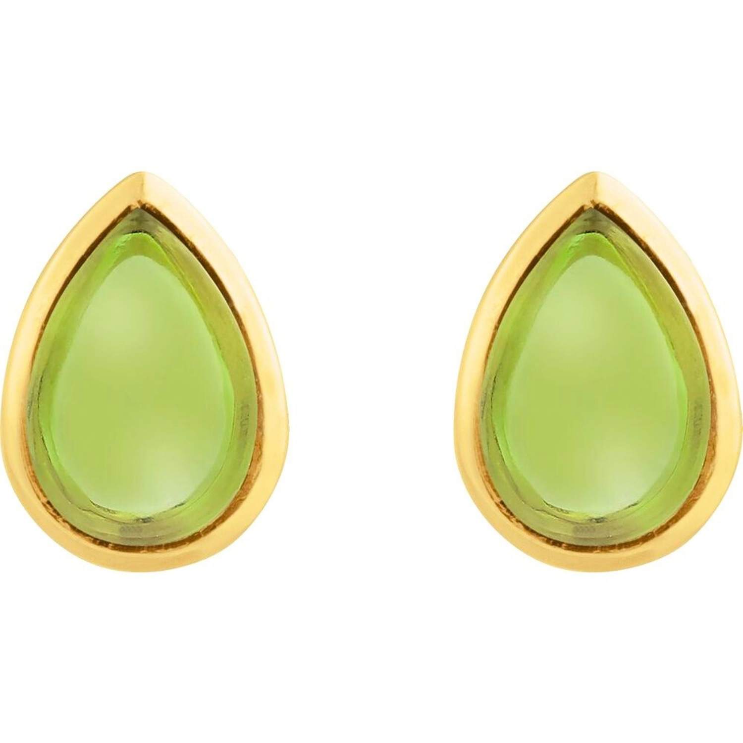 14K Gold Cabochon Pear Peridot Stud Earrings